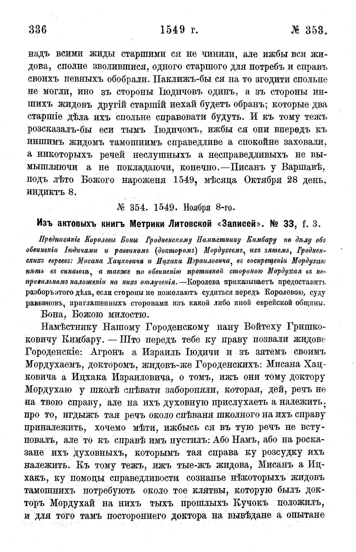 Изъ актовыхъ книгъ Метрики Литовской «Записей». N2 33, f. 3.