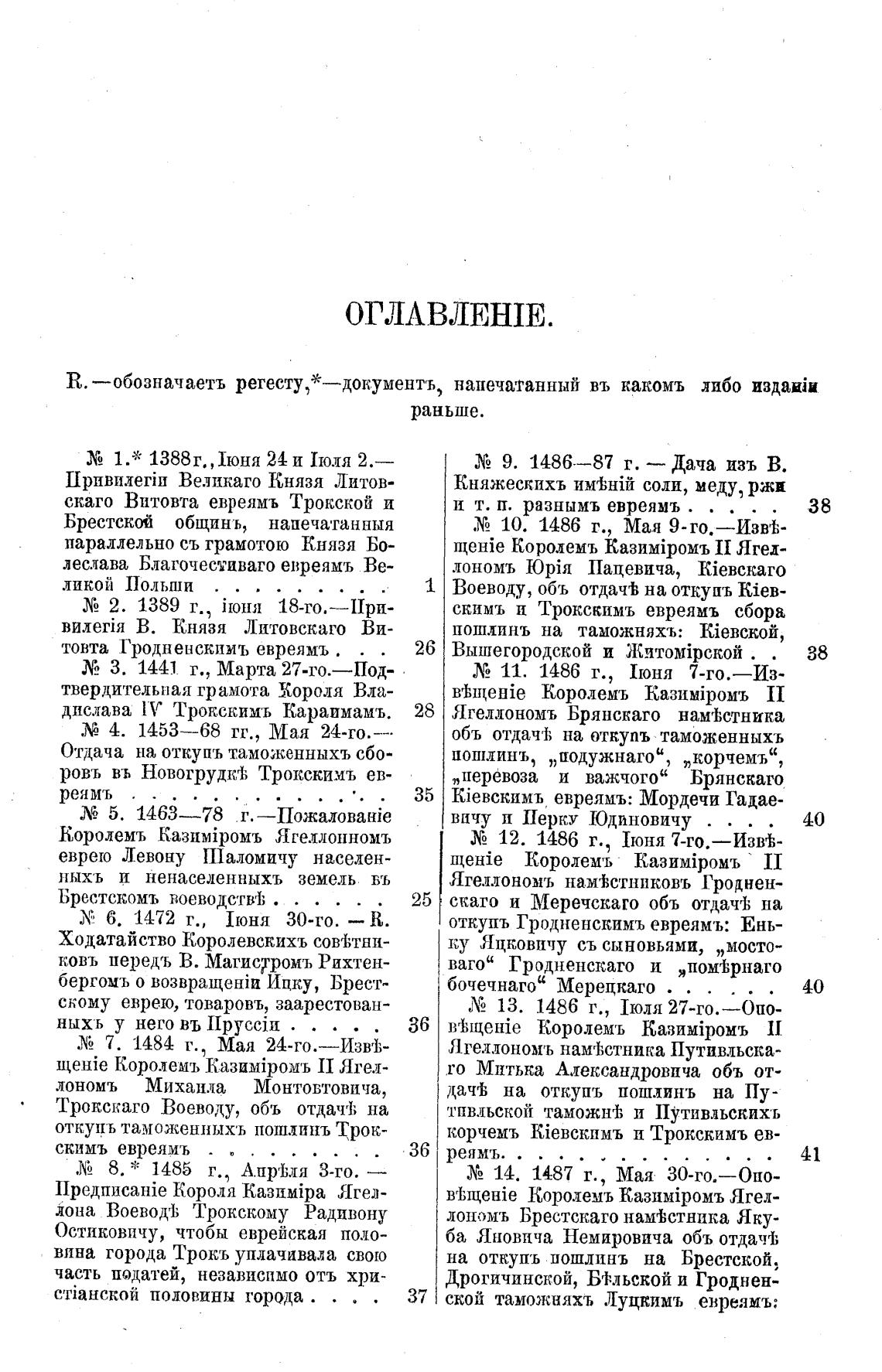 R. —обозначаетъ регесту,*—документъ, напечатанный въ какомъ либо издаиЈи