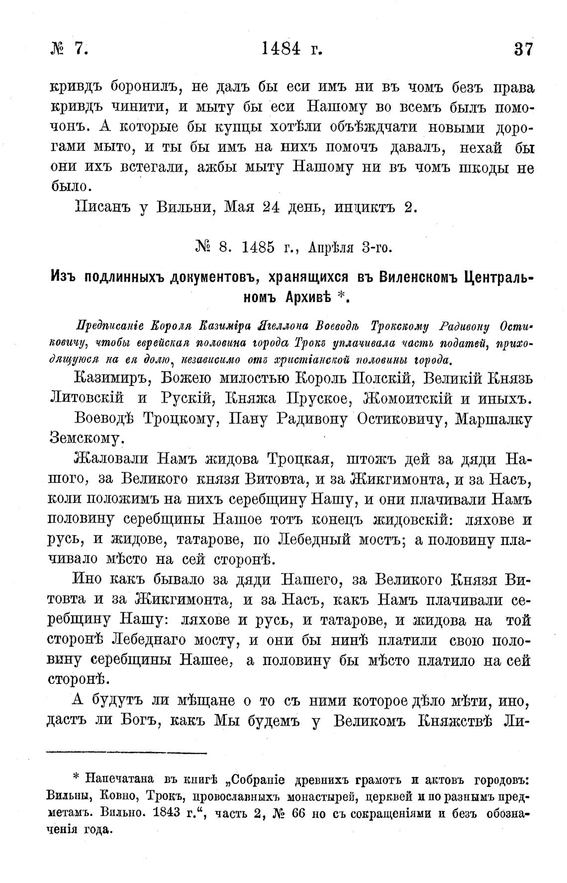 Изъ подлинныхъ документовъ, хранящихся въ Виленскомъ Централь-