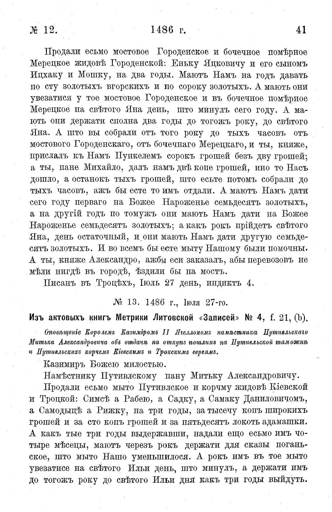 ЛЂ 13. 1486 г., 1юля 27-го.