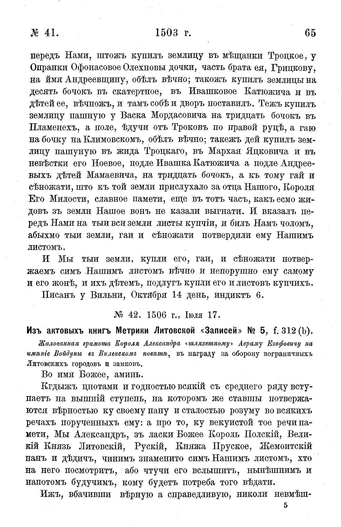 Изъ ан.ТОВЫХЪ книгъ Метрики Литовской «Записей» N2 5, f. 312 (Ь).