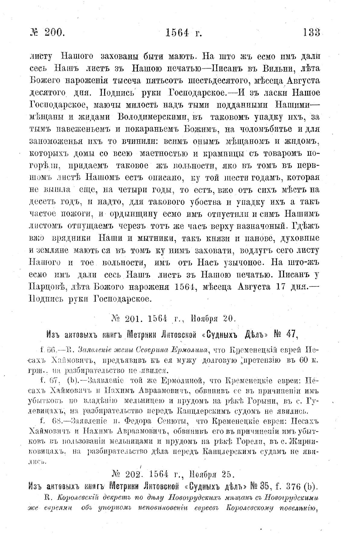 Изъ антввыхъ ниигъ Метрики Литовсной «Судныхъ NQ 35, f, 376 (Ь).