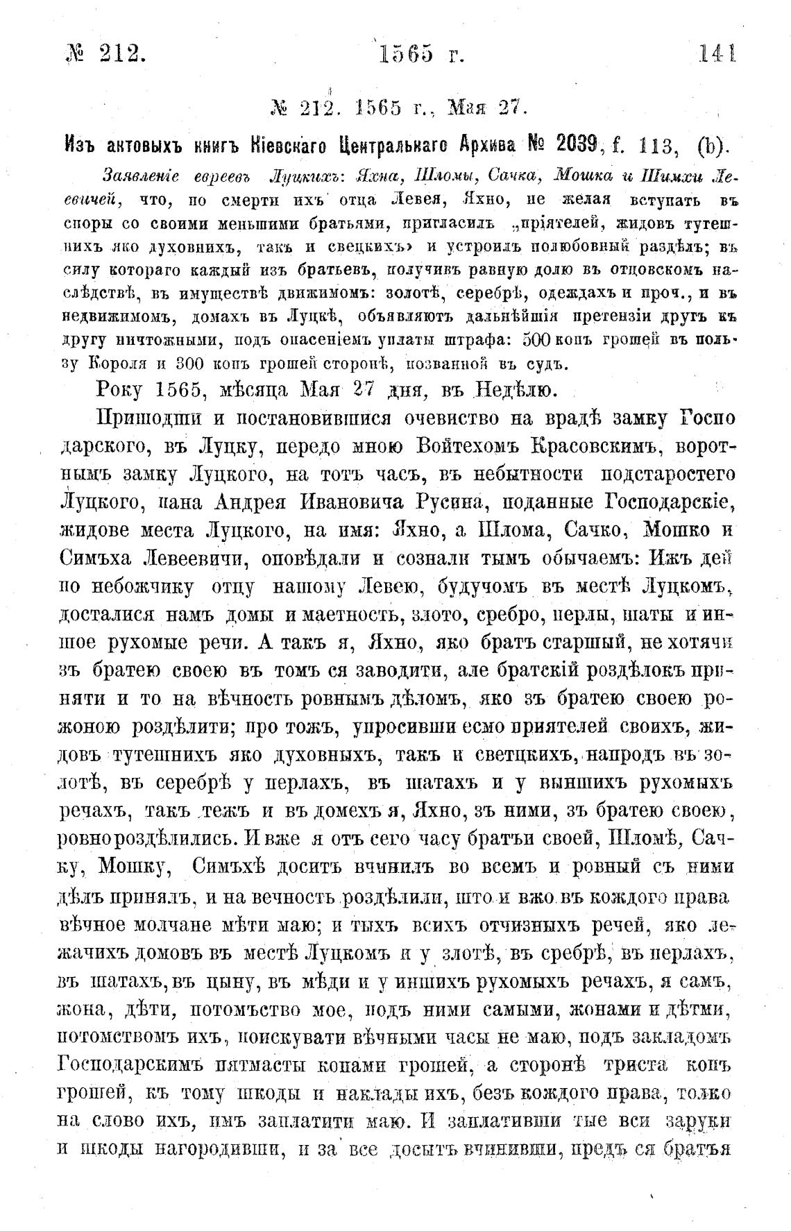 Х 212. 1565 г., мая 27.
