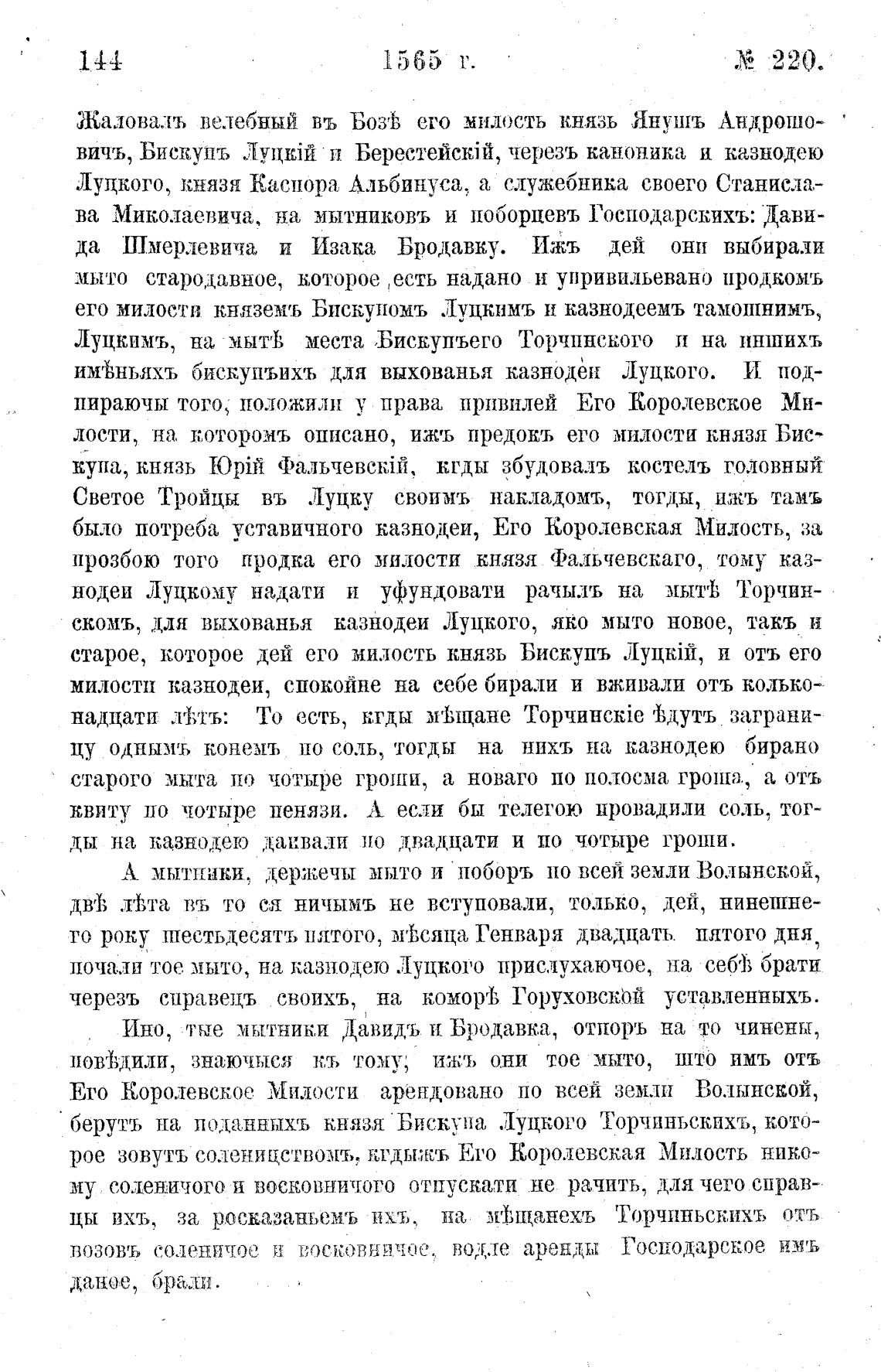 ЛУЦКИМЪ, на мытт1% места ,Бискупъего Торчпнского и на иншихъ