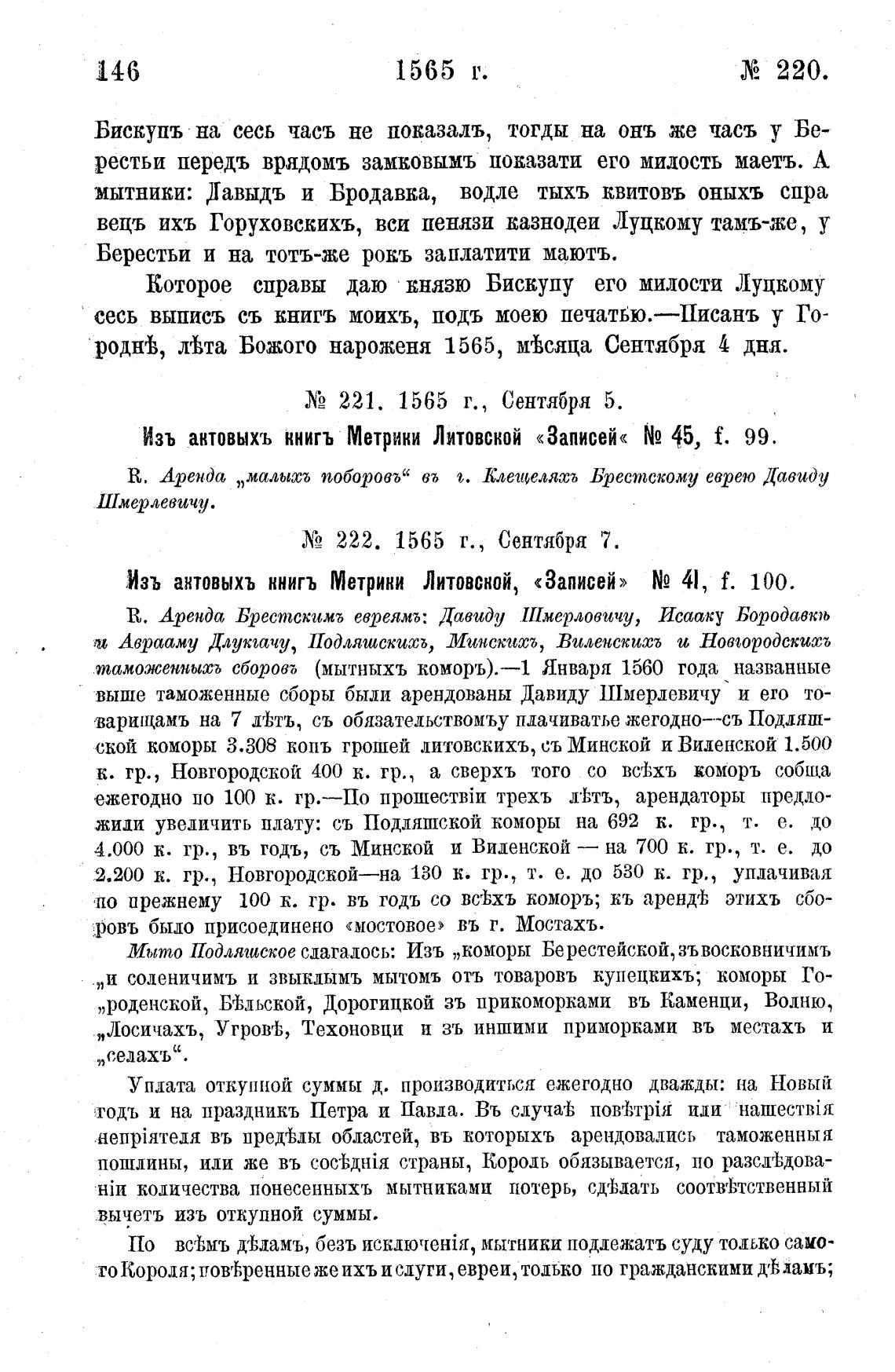 Х2 221. 1565 г., Сентября 5.