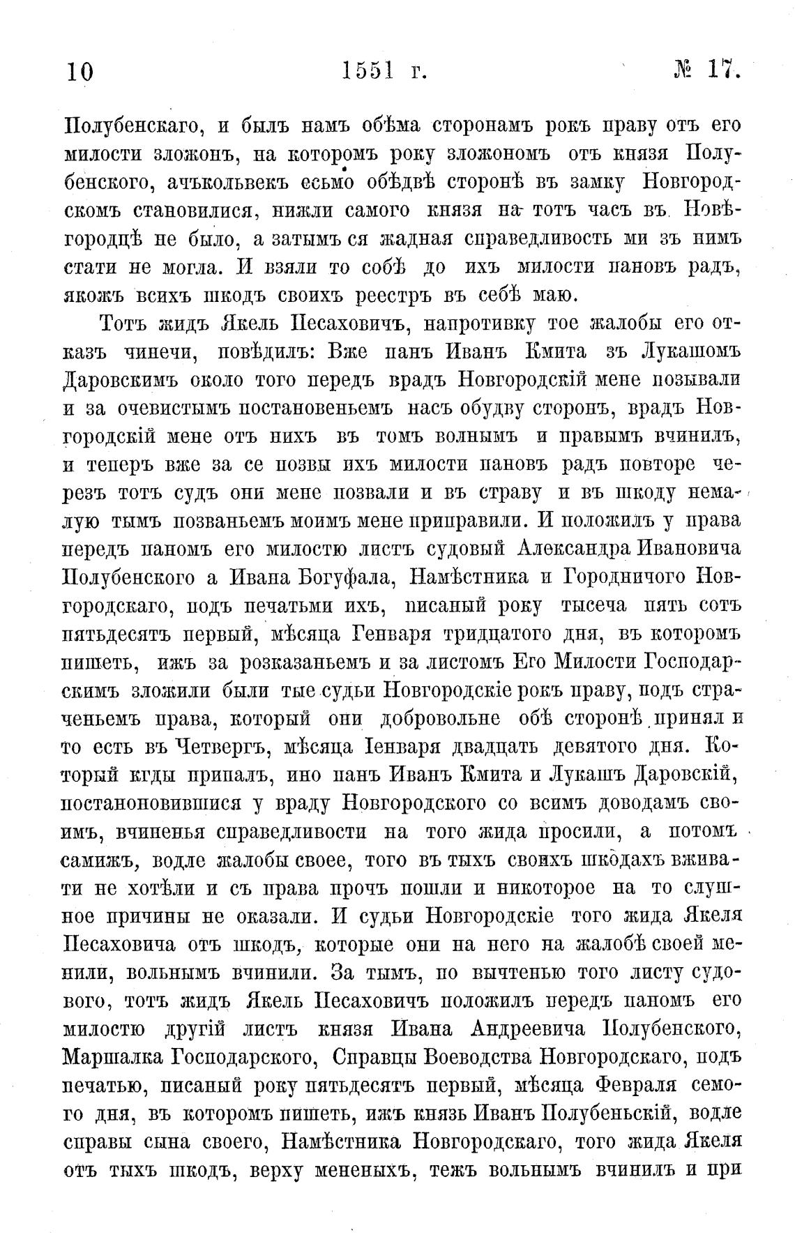 Полубенскаго, и быль намъ обгђма сторонамъ рокъ праву отъ его