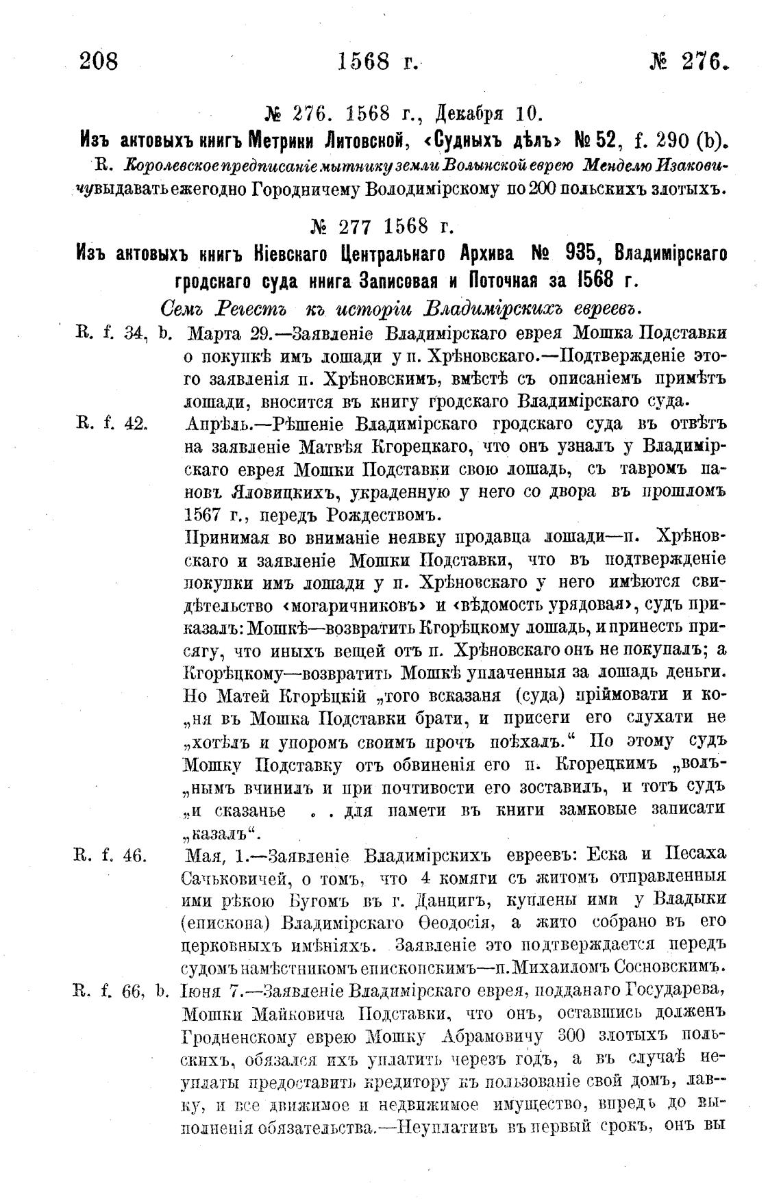 276. 1568 г., Декабря 10.