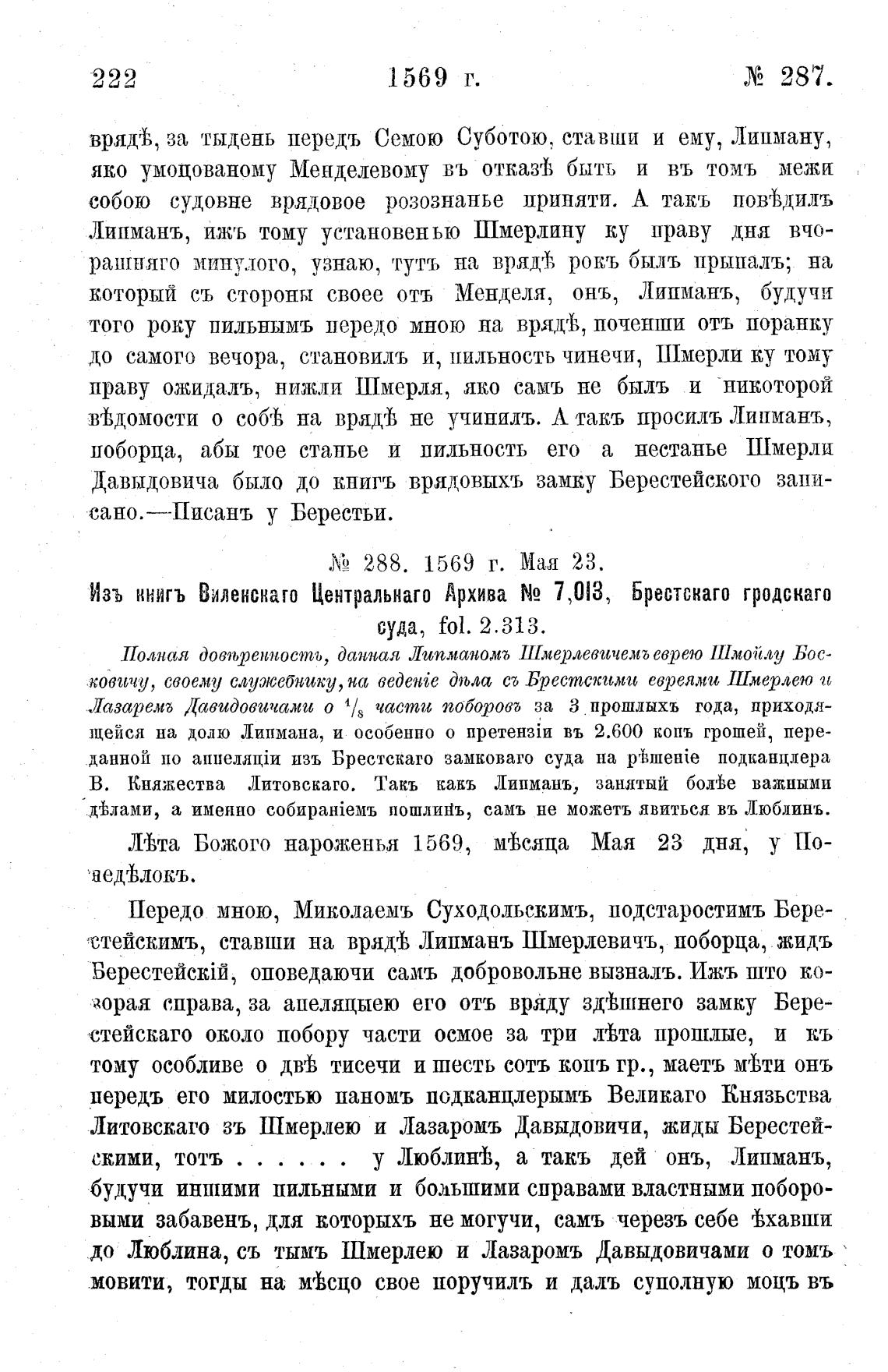 Изъ книгъ Виленскаго Центральнаго Архива N2 7 013, Брестскаго гродскаго