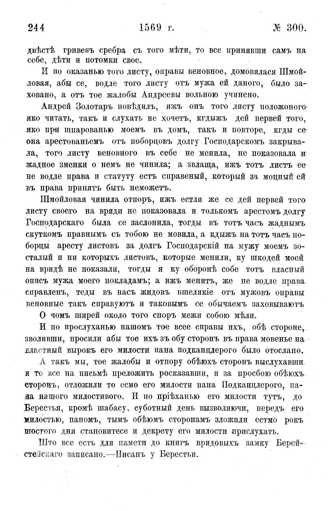 стеЈскаго записано.—Писанъ у Берестьи.