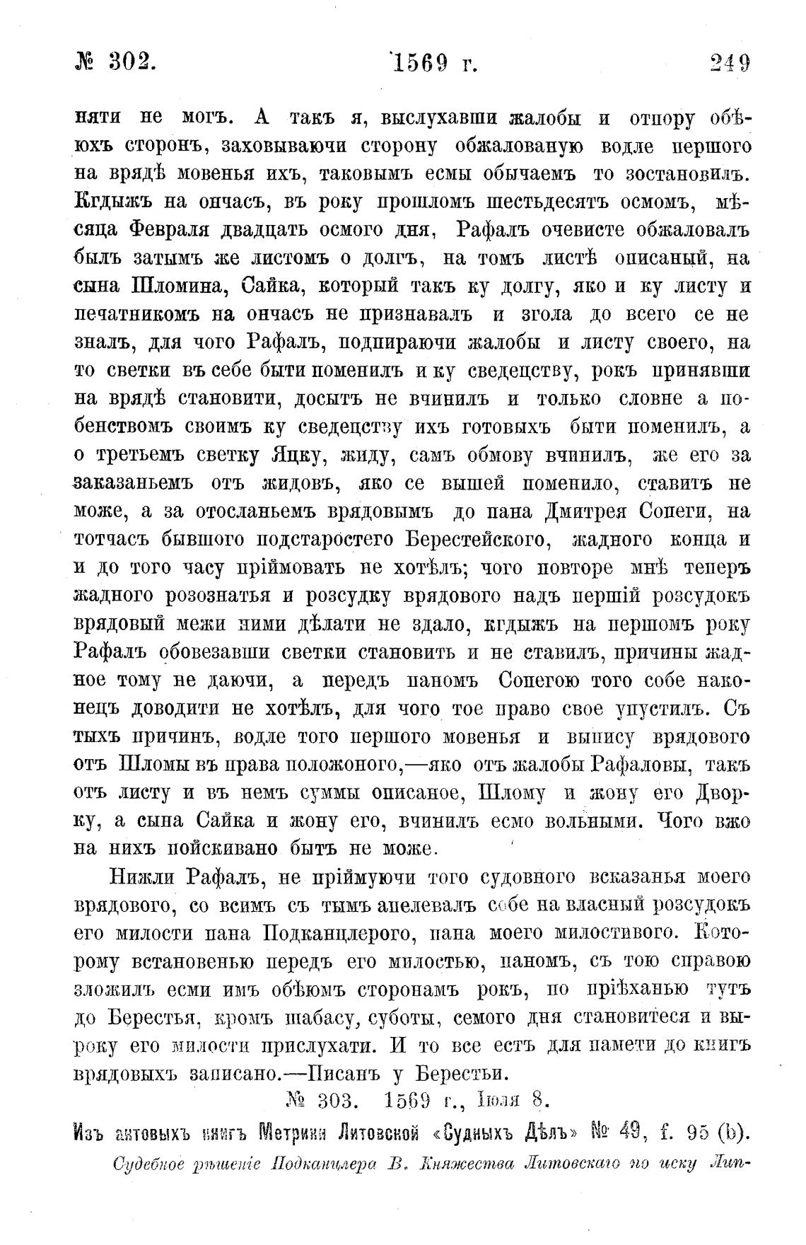 Изъ азтовыхъ :жигъ Метрии Литовской «Дудныхъ Д%лъ» N2 49, f. 95 (Ь).