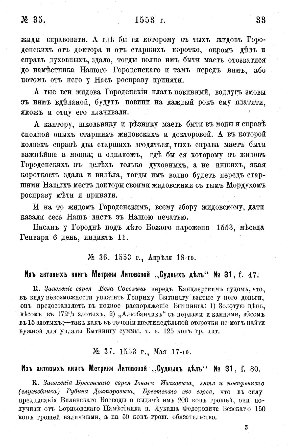Изъ антовыхъ книгъ Метрики Литовской „Судныхъ д%лъ” N2 31 , f. 47.