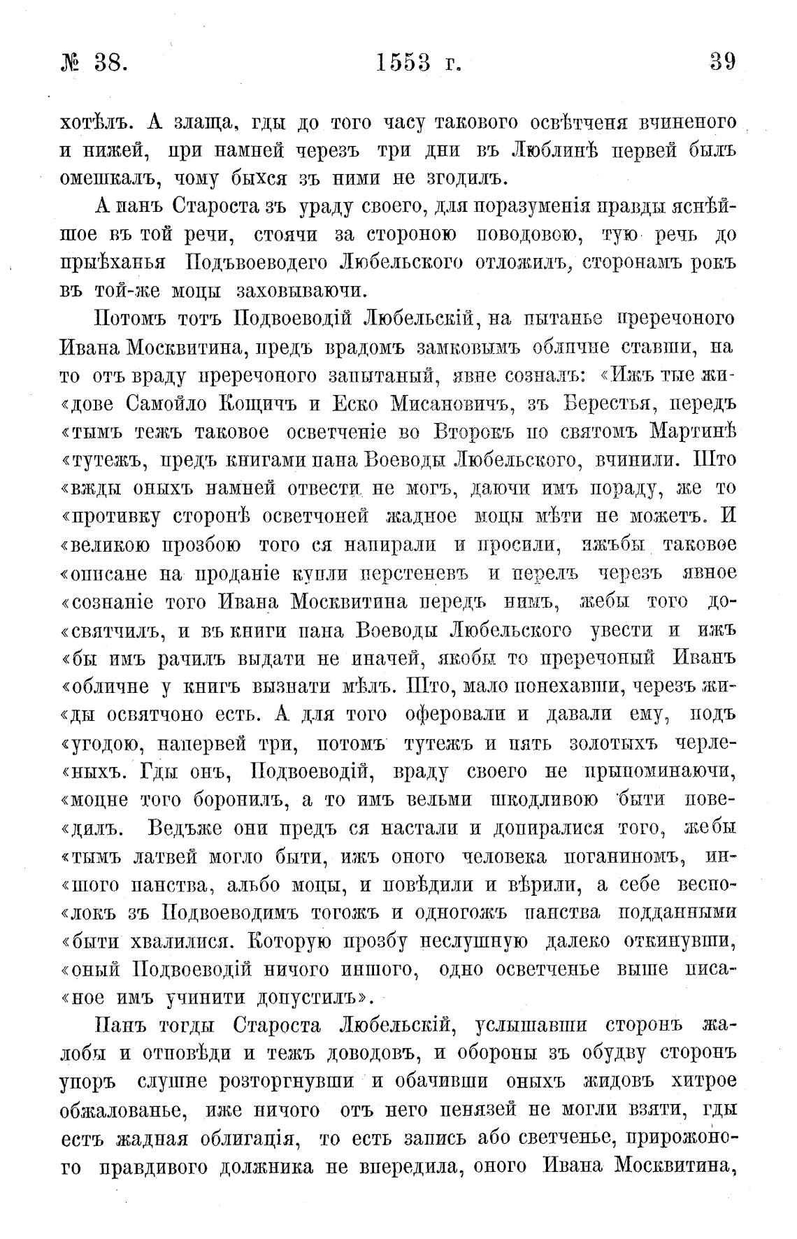 Панъ тогды Староста ЛюбельслЈй, услышавши сторонъ жа-