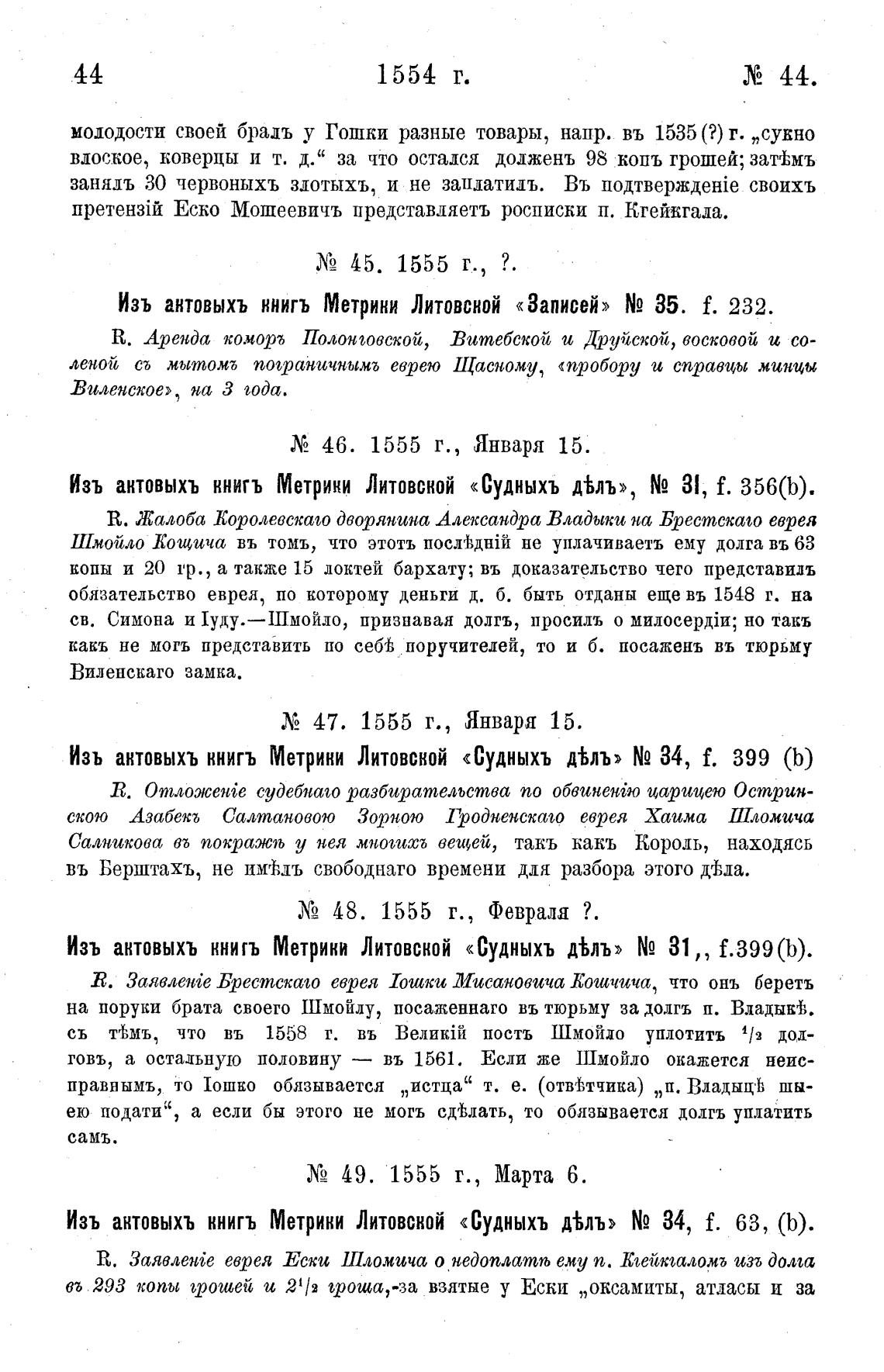 Изъ актовыхъ книгъ Метрики Литовской «Судныхъ д%лъ» NQ 31 „
