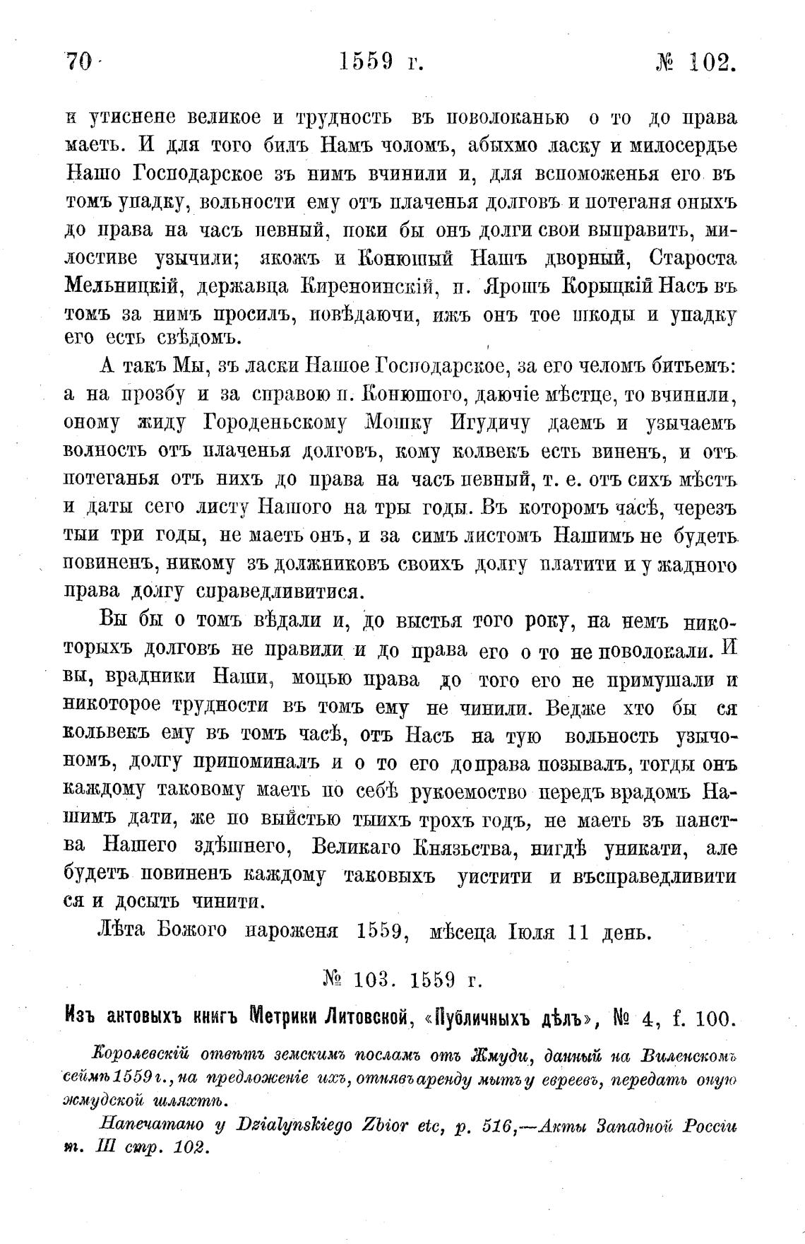 Изъ актовыхъ кнИгъ Метрики Литовской, «Публичныхъ д%лъ», Ng 4, f. 100.