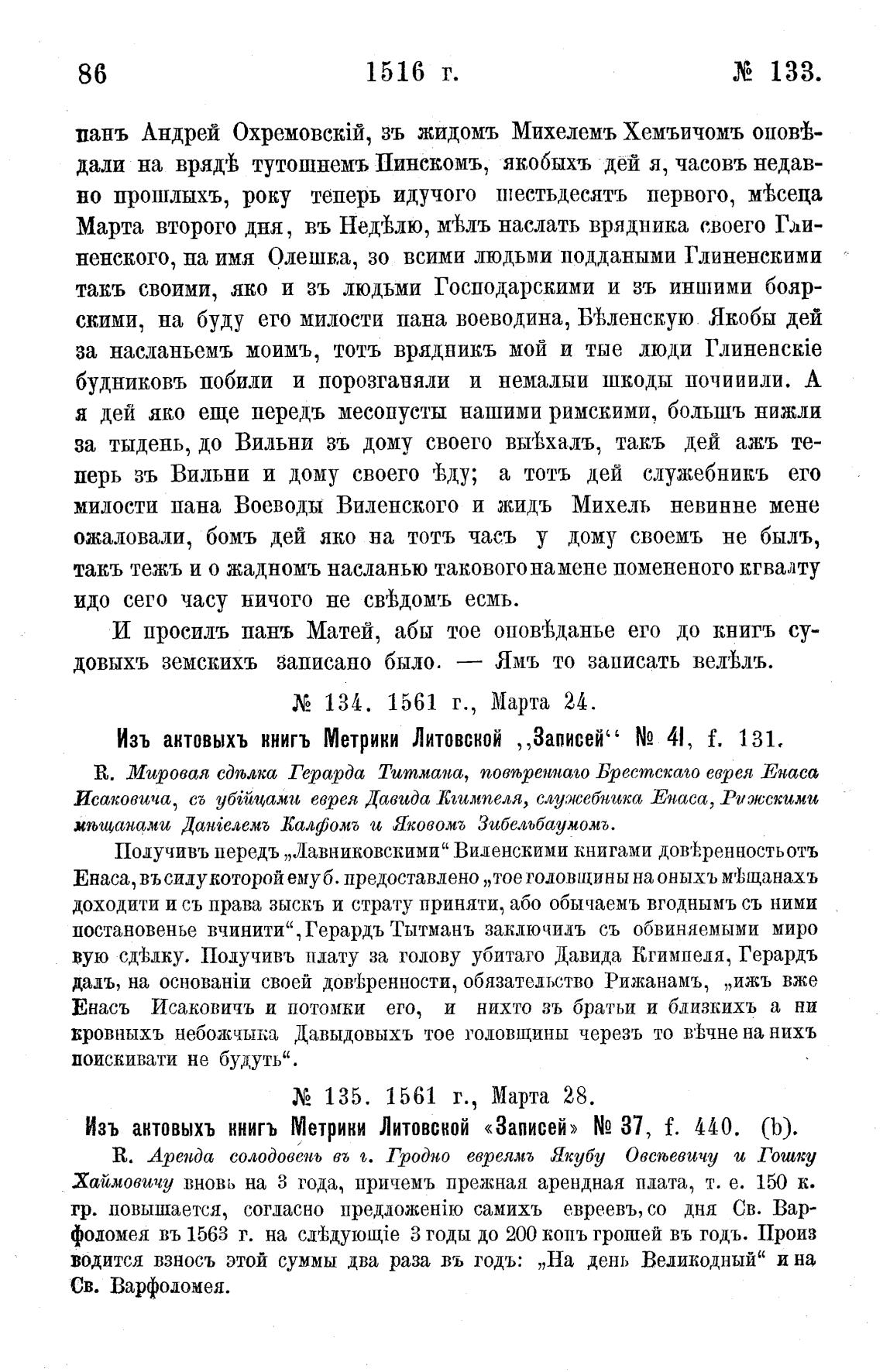 Изъ антовыхъ ннигъ Метрики Литовской „Записей” NQ 41, f. 131.
