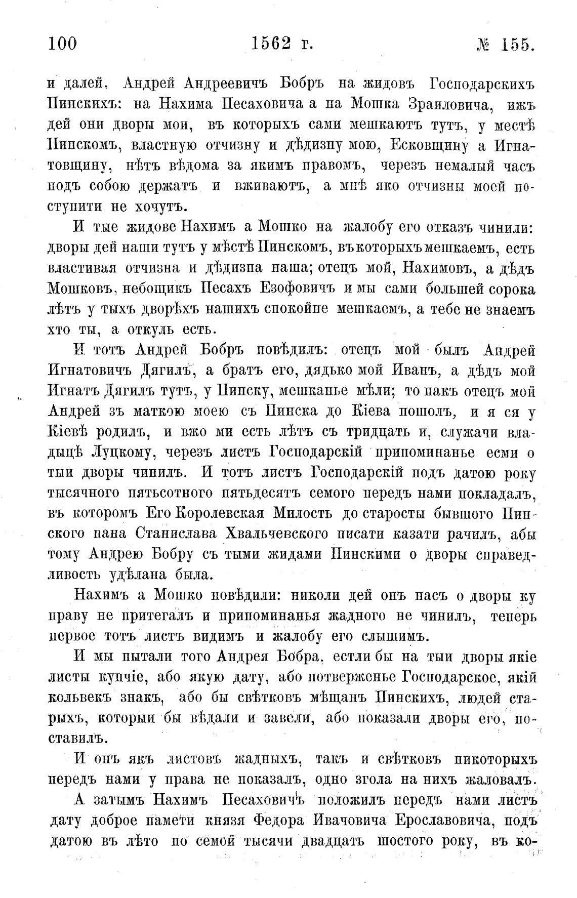тому Андрею Бобру съ тыми жидами Пинскими о дворы справед-