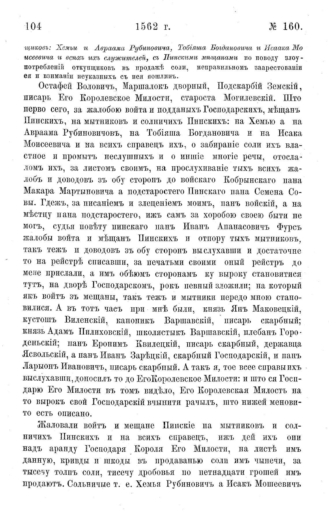 исеевича и встьа'ћ иа:ъ слутситељеп, съ Пинскими .лпьщ(ишми по поводу злоу -