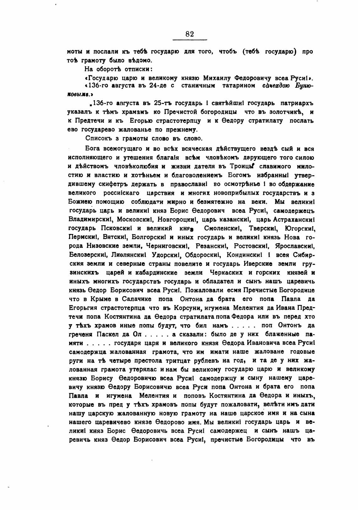 князь еедор Борисович всеа Руси!. Пожаловали есмя Пречистые Богородице
