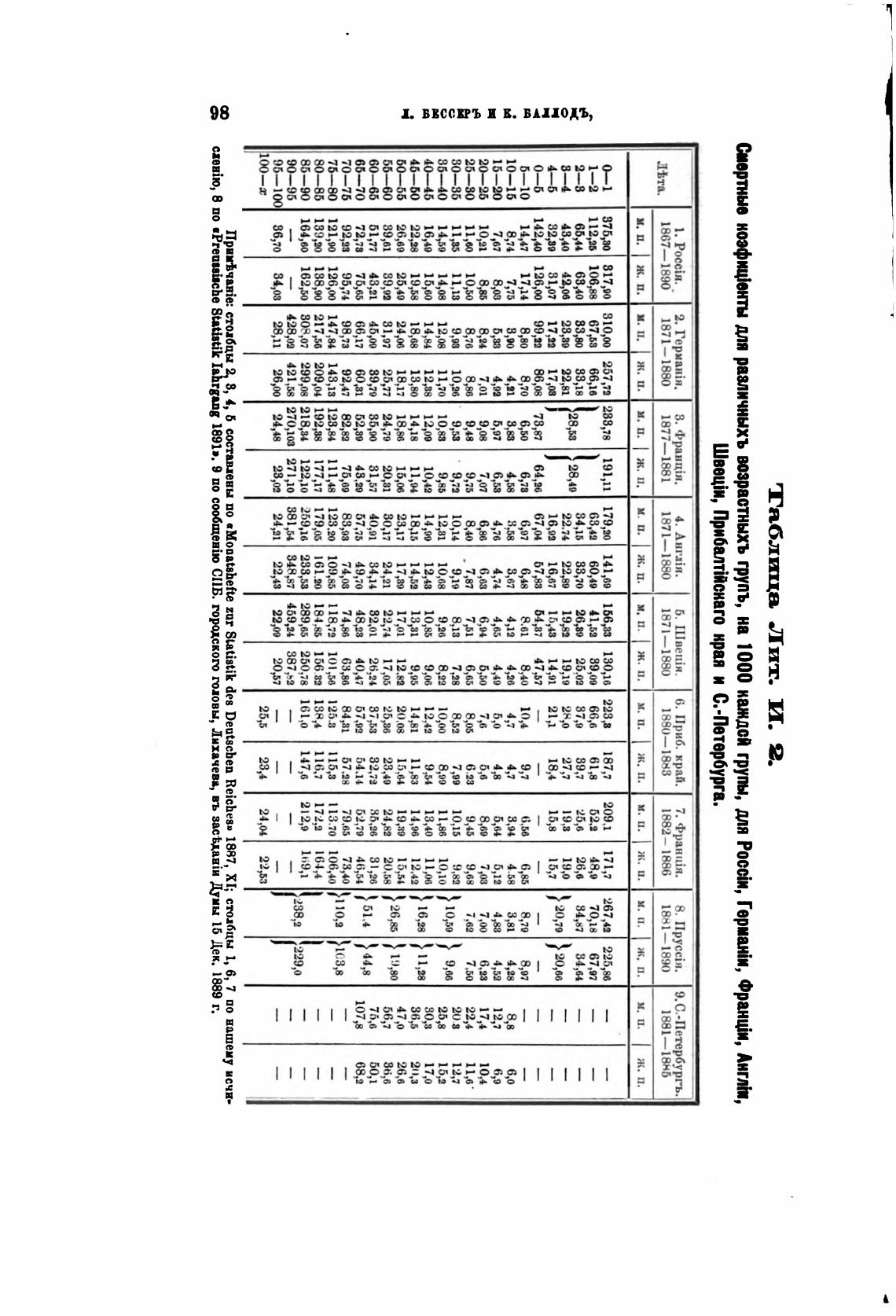 Смертность, возрастной состав и долговечность православного народонаселения обоего пола в России за 1851-1890 годы, с приложениями... - Бессер Л., Баллод И.
