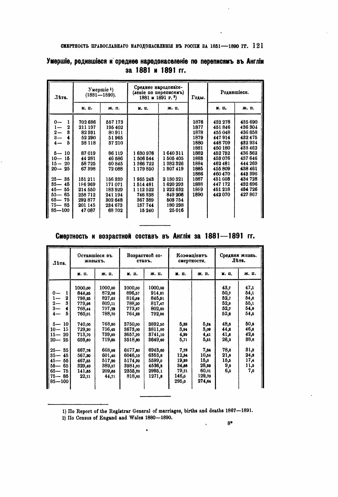 2) По Census of Engand and Walu 1880—1М.
