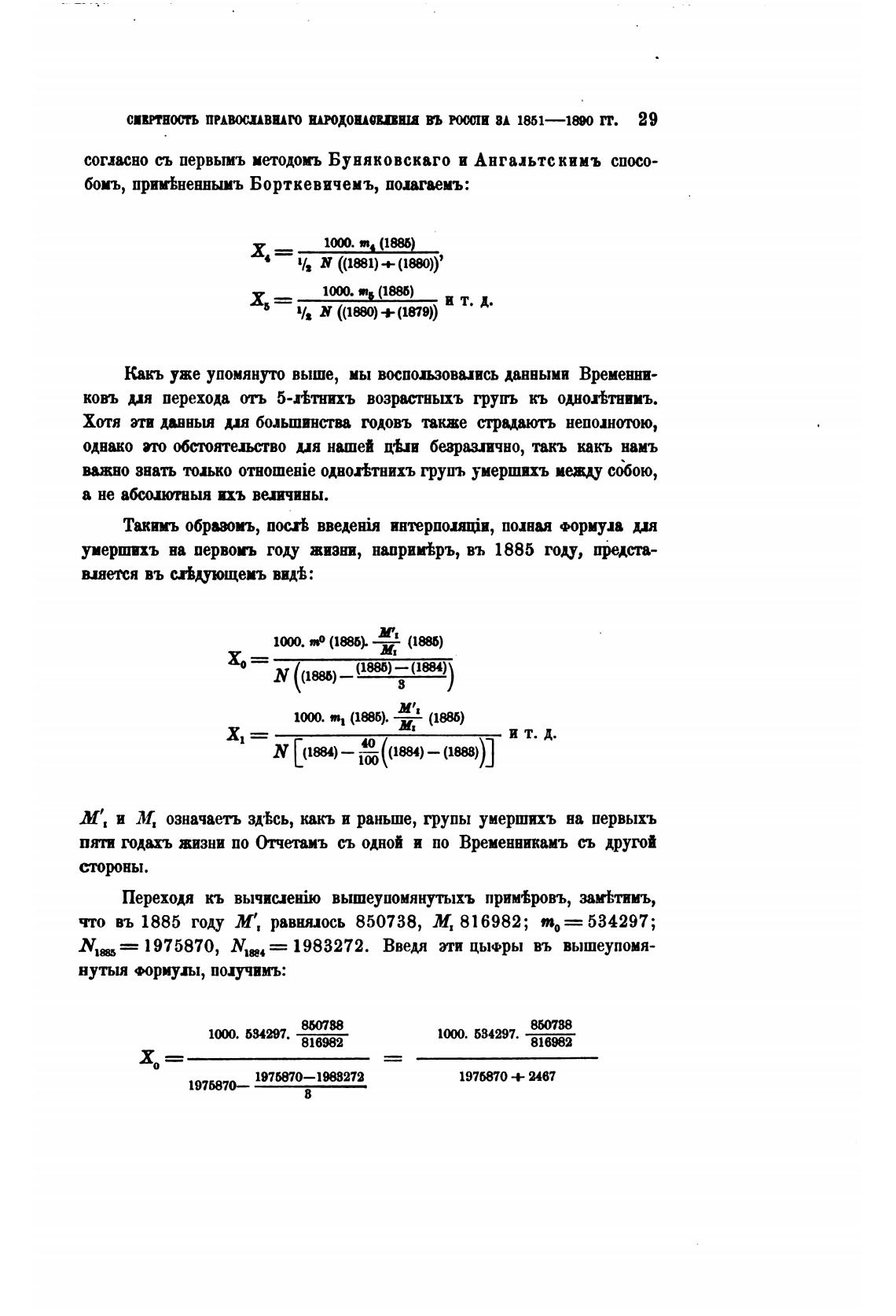 что въ 1885 году М', равнялось 850738, М, 816982; то=534297•,