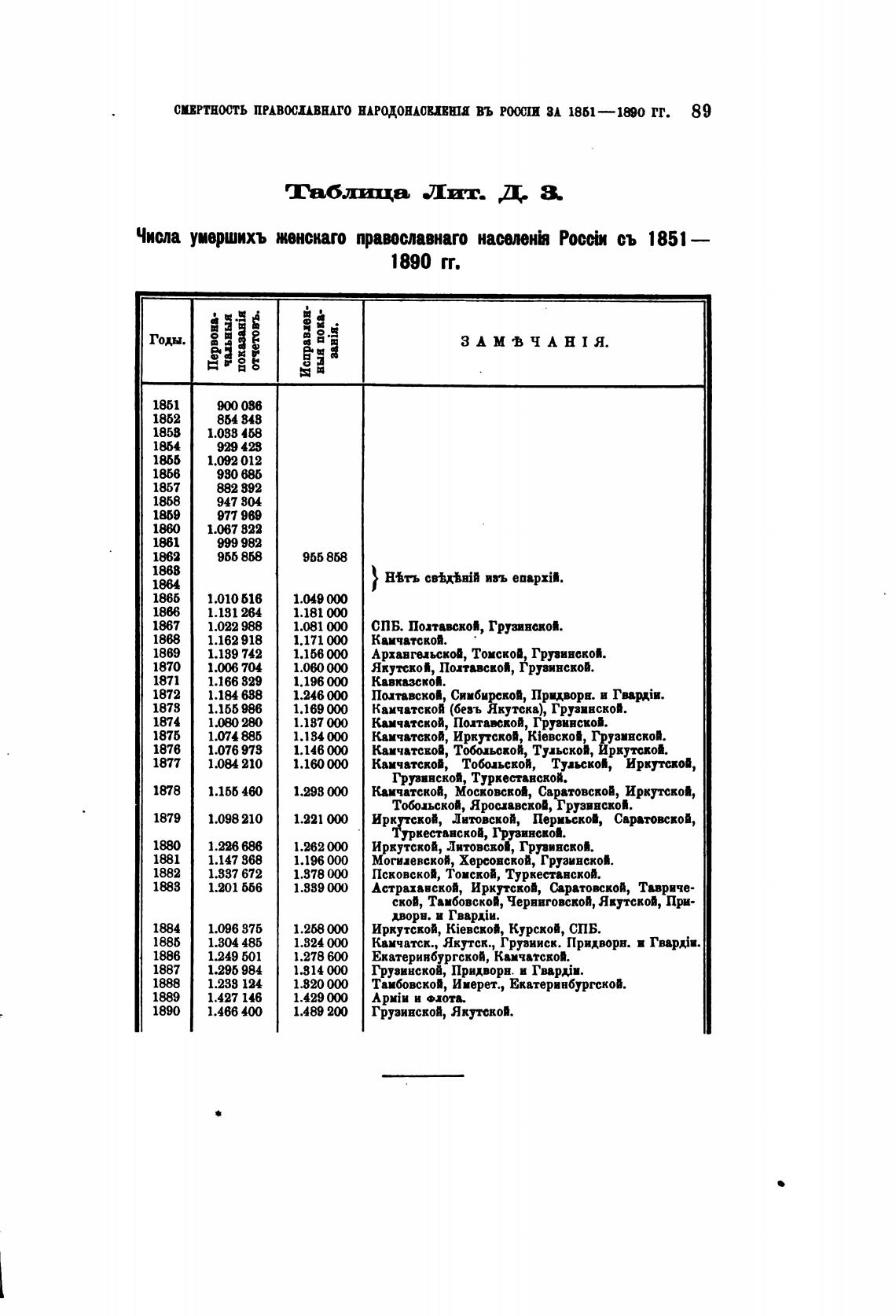 Числа умершихъ женскаго праиславнаго населень съ 1851 —