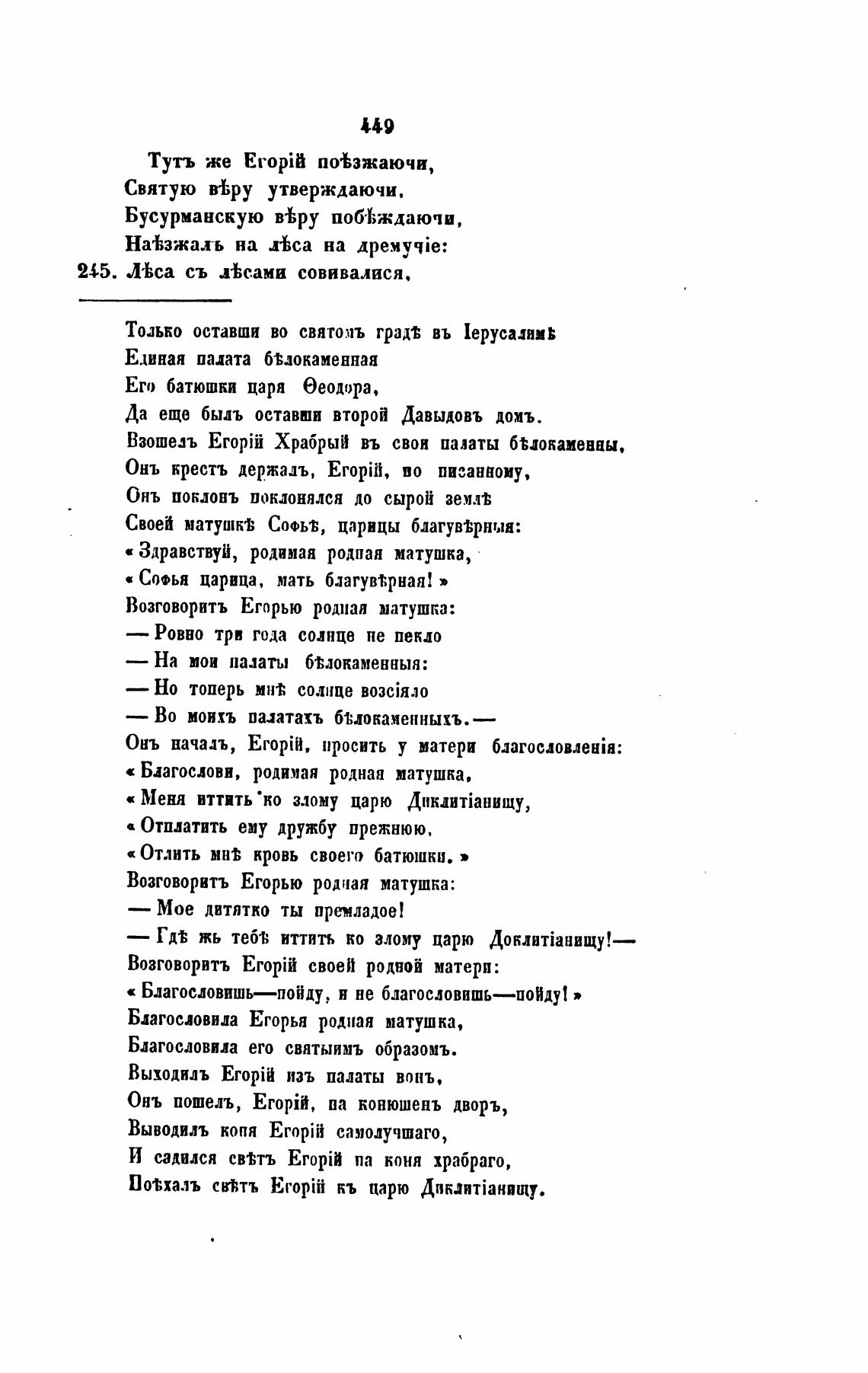 Возговорвтъ Егорью родная матушка: