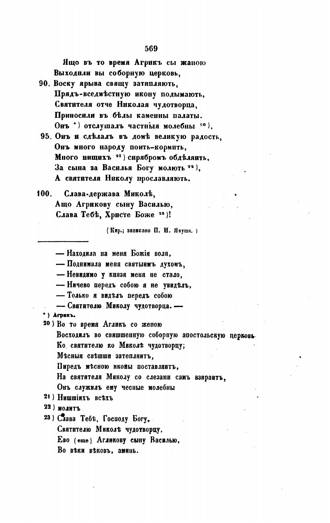 ( Кир.; записано П. И. Якушк. )