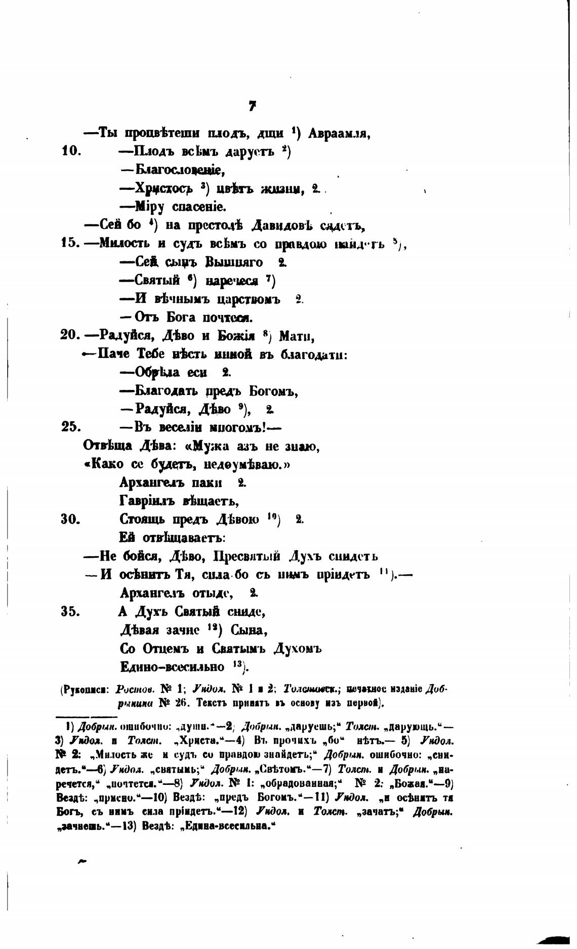 (Рувописи: ростов. 1; Умоол. N9 и 2; ТолшИзсИ.; naaaie Доб.