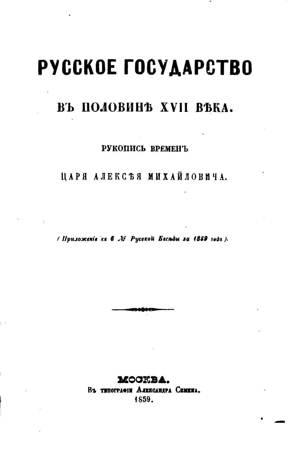 ЦАРЯ АЛЕКСЂЯ МИХАЙЛОВИЧА.