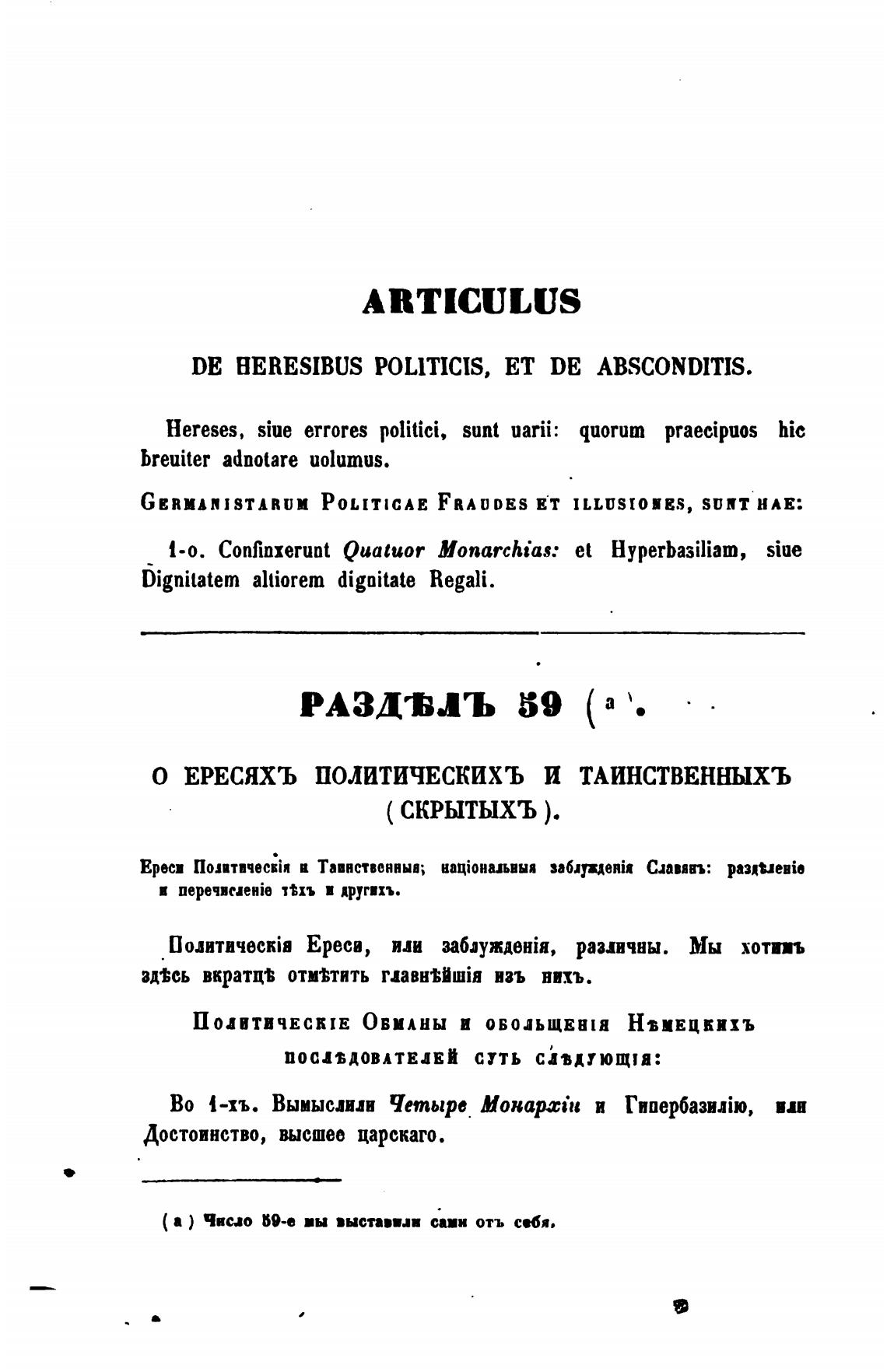 О ЕРЕСЯХЪ ПОЛИТИЧЕСКИХЪ И ТАИНСТВЕННЫХЪ