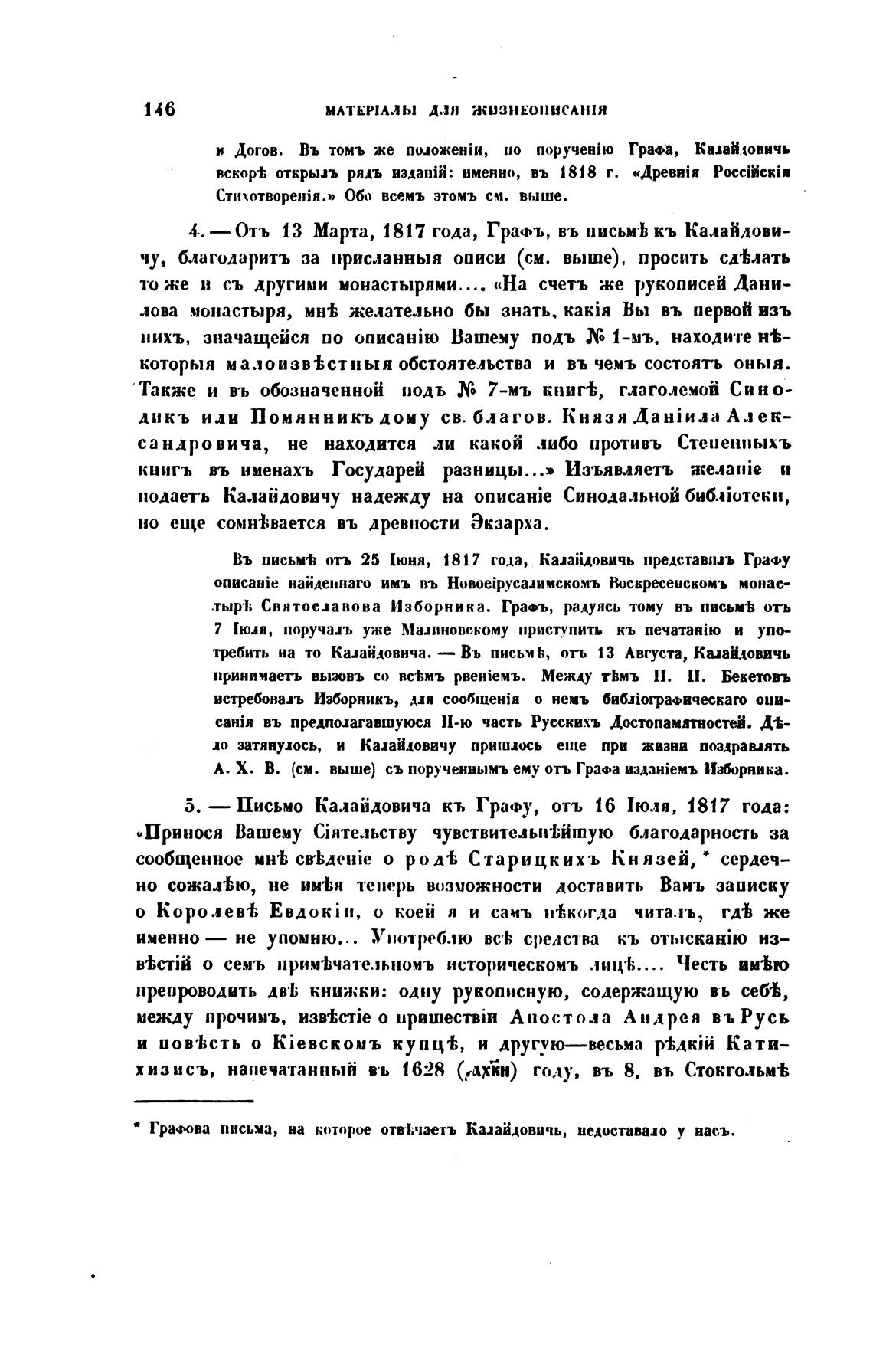 %• письма, на которое Калайдовичь, ведоставало у васъ.