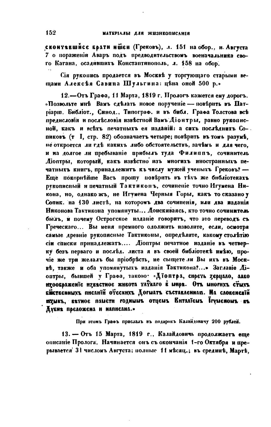 13. — Отъ 15 Марта, 1819 г., Калайдовичь продолжаетъ еще