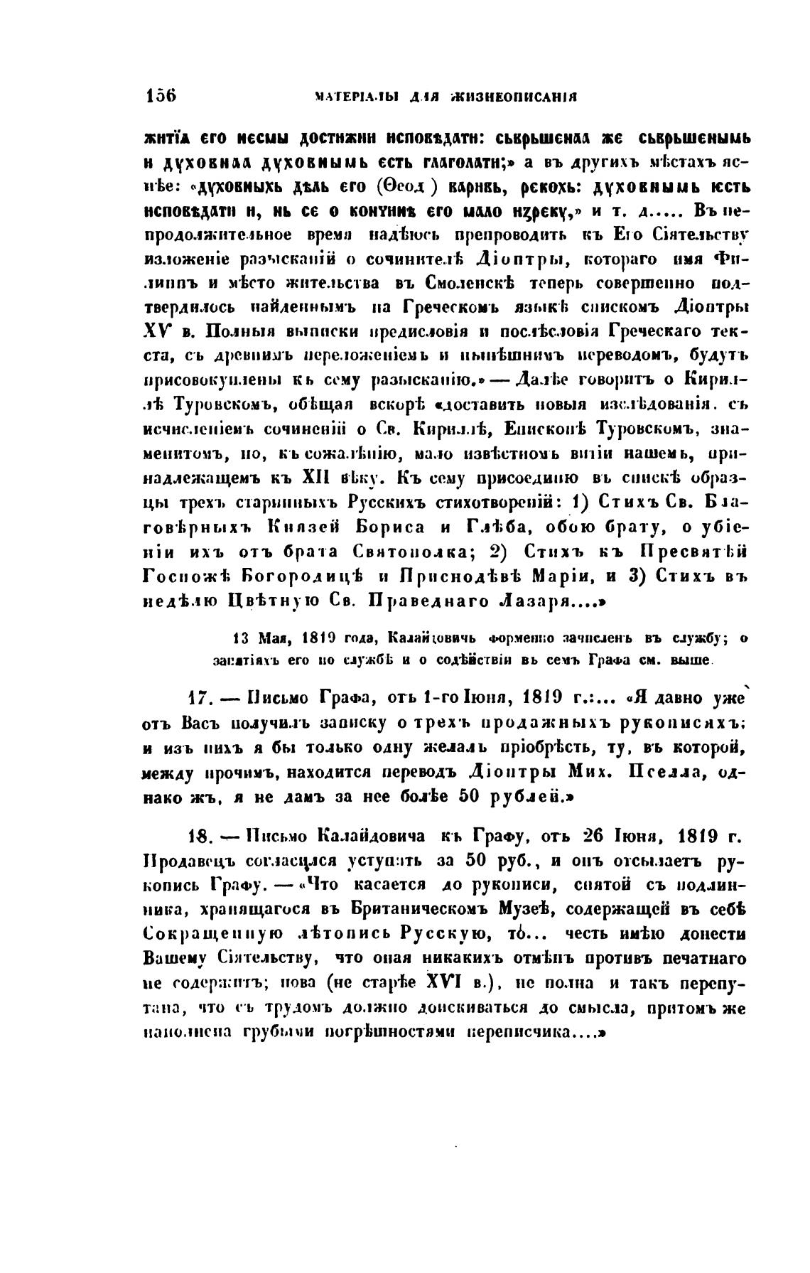 13 Мая, 1819 года, Калан швичь зачнсаен•ь въ службу; о