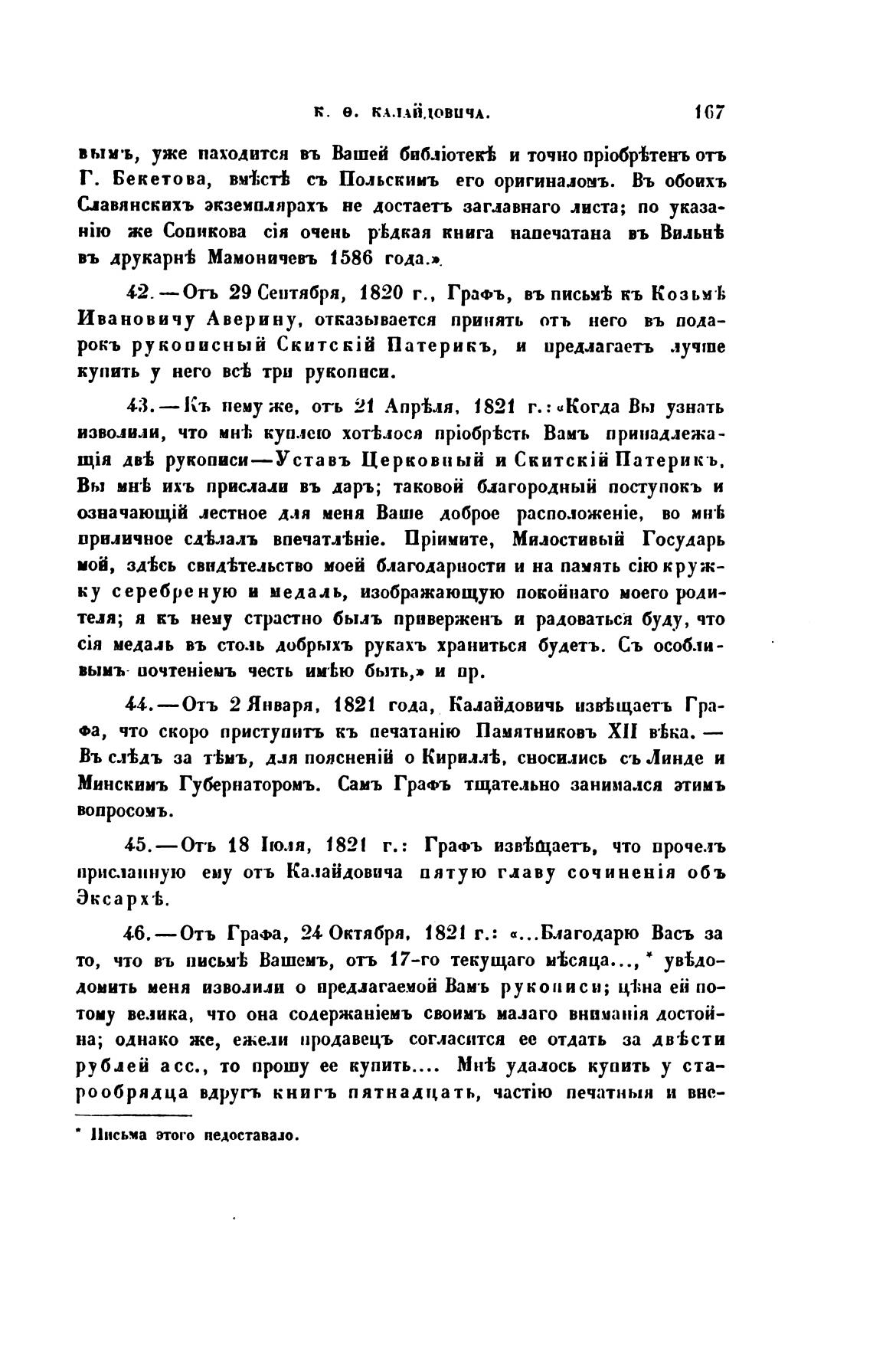 44.—Отъ 2 Января, 1821 года, Калайдовичь изв%щаетъ Гра-