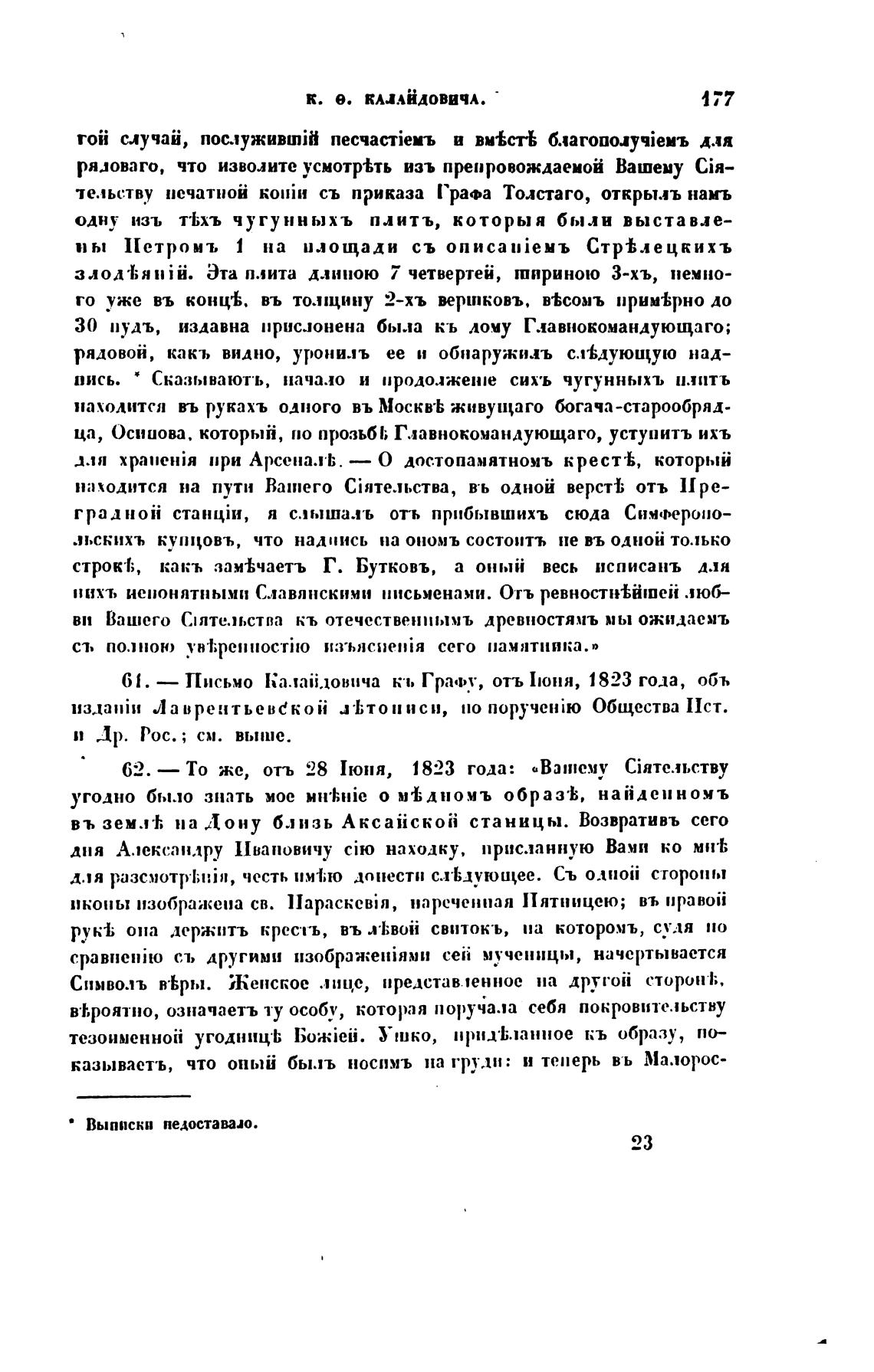 61. — Письмо кт. Гра•оу, отъ Июня, 1823 года, объ