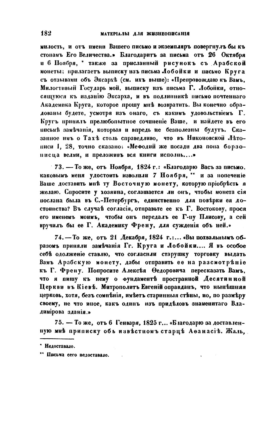 73. — То же, отъ Ноября, 1824 г.: «Благодарю Васъза письмо.