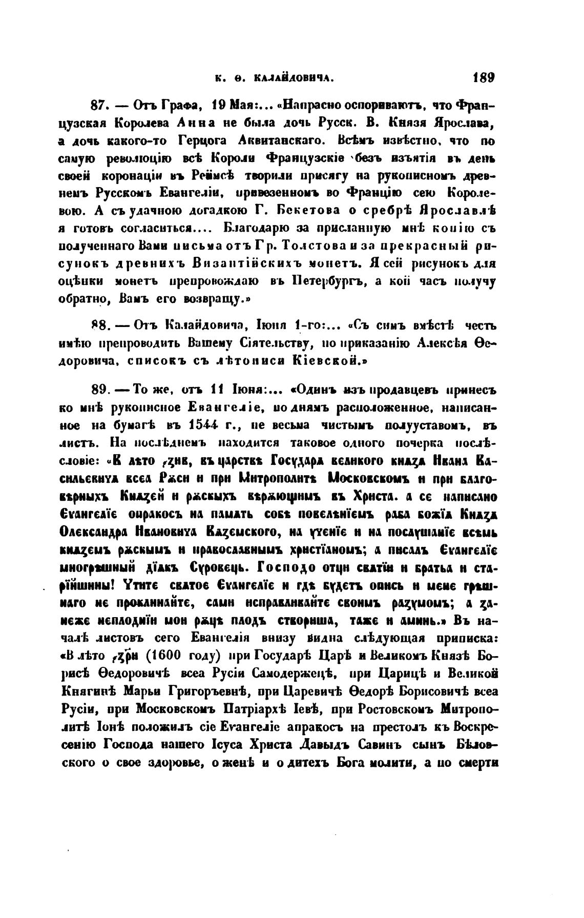 88. — Отъ Калайдовича, Июня 1-го:... «Съ синь вм•ЬсН; честь