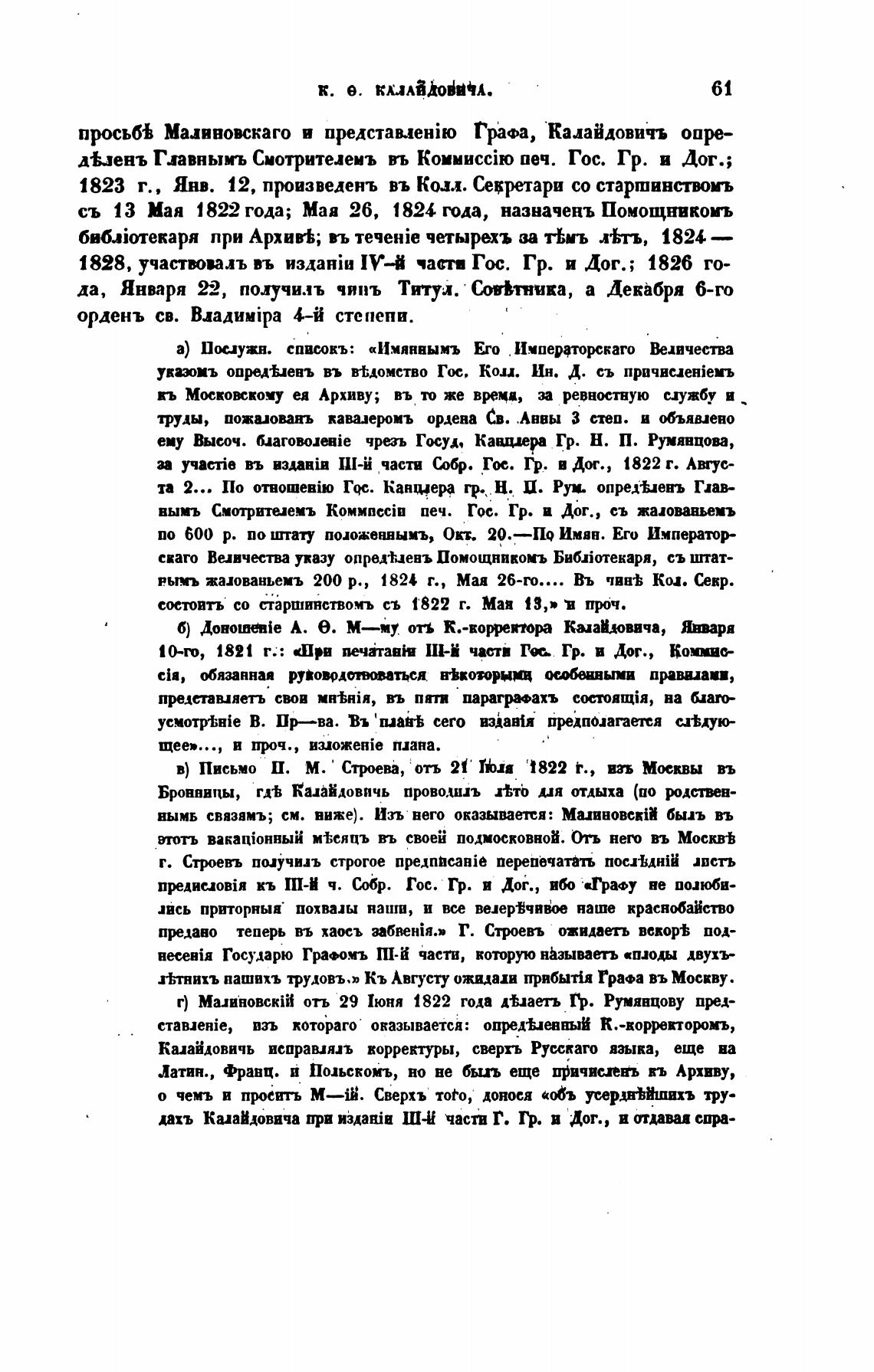 в) Письмо П. М. Стрева, отъ 21 'i822 е., М(рквы въ