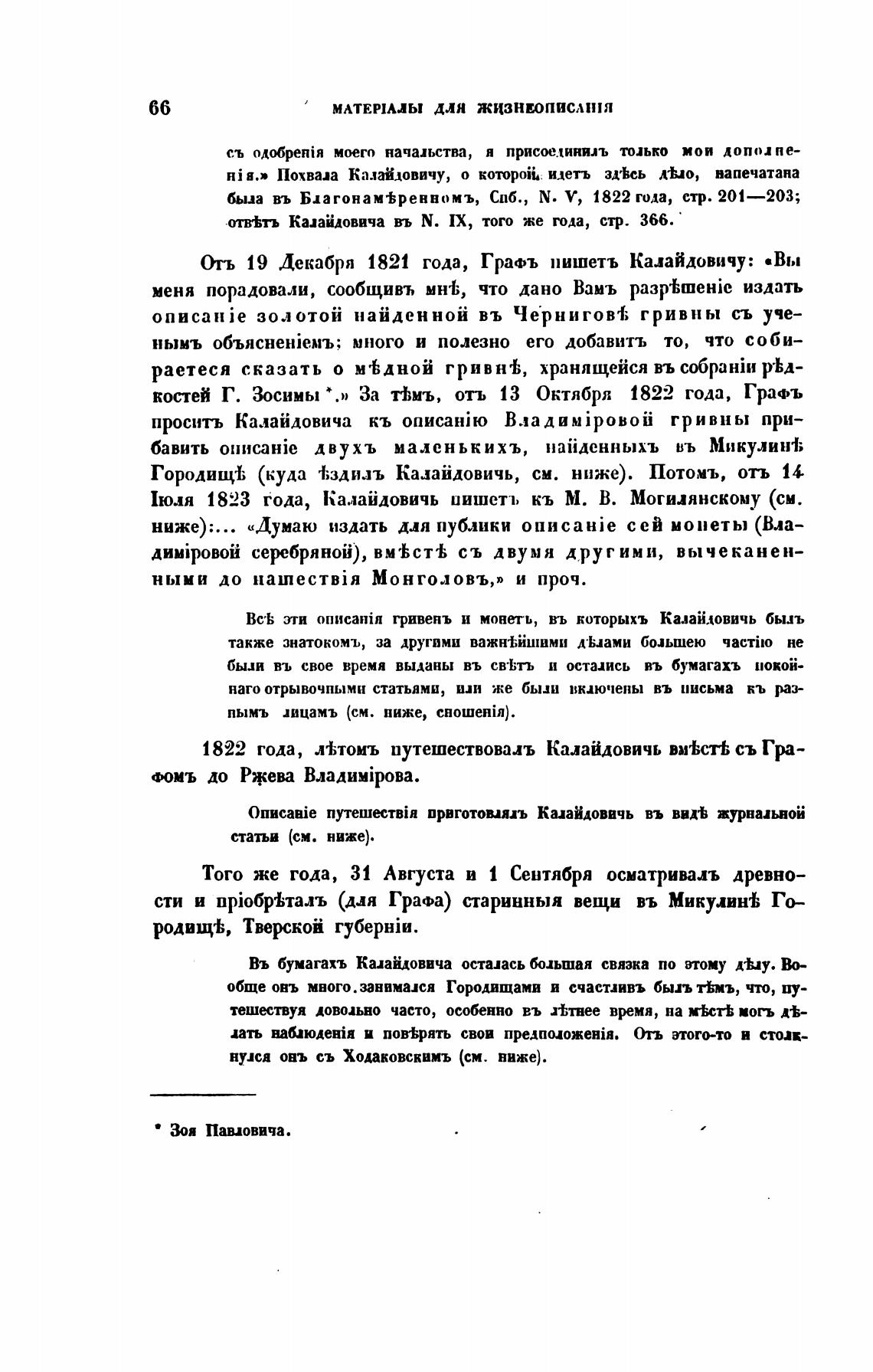 Отъ 19 Декабря 1821 года, Гра«љ пишетъ Калайдовичу: «Вы