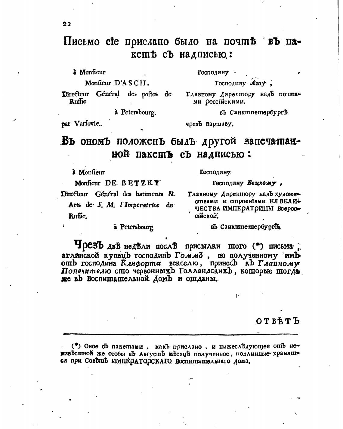 Письмо cie прислано было на почгпв въ па-