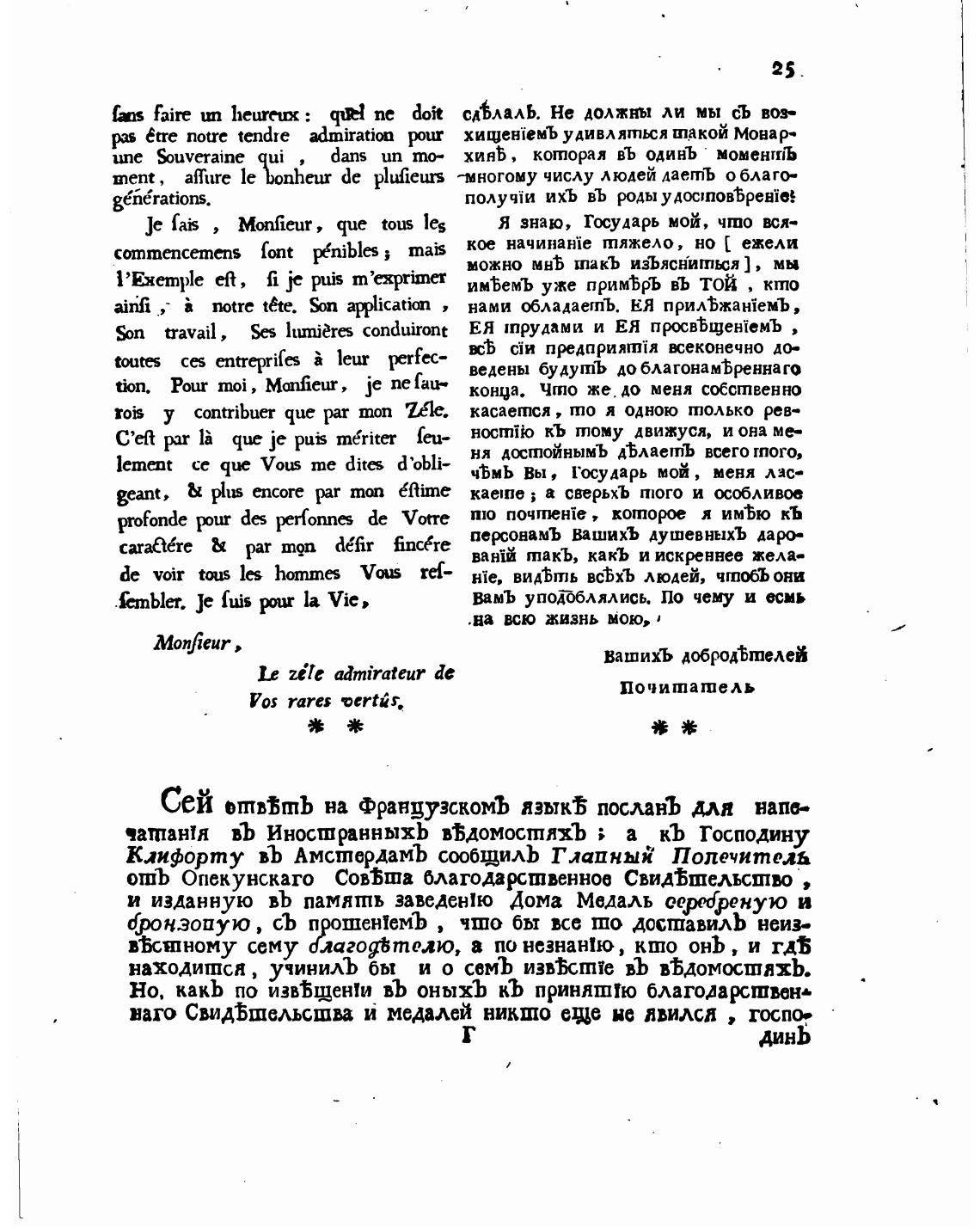 чатпан!я въ ИностранныхЬ в$домосшлхЪ ; а кь Господину