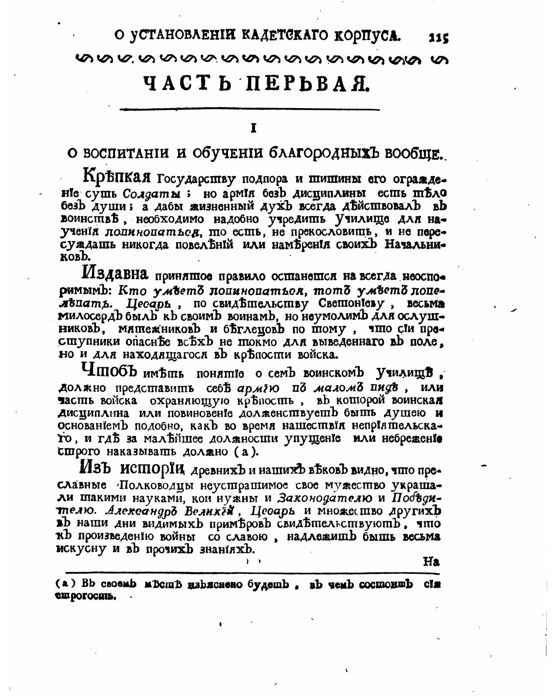 О уСТАНОВЛЕНIИ КАДЕТСКАГО корпусА. зя;