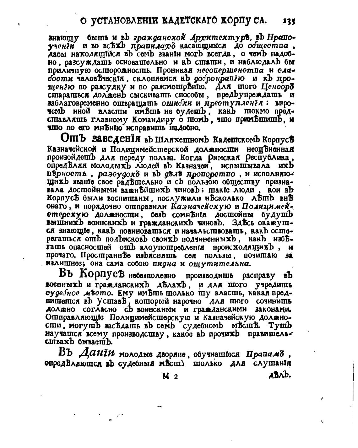 ОШЬ заведени въ ШляхешномЪ кадатскомЪ КорпусВ
