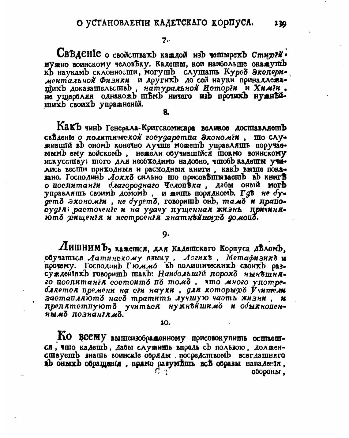 о уСГАновлЕнш КАДЕТСКАГО корпуск.
