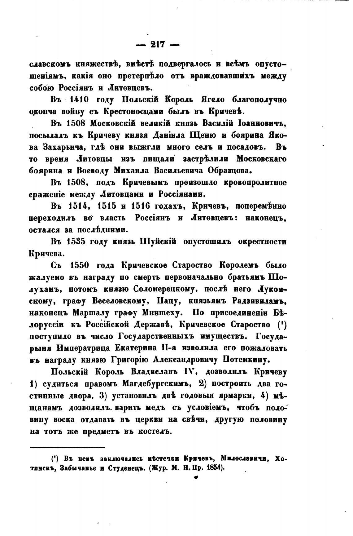 Съ 1550 года Кричевское Староство Королемъ было