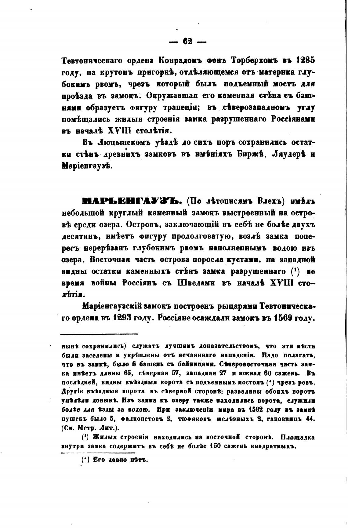 внутри замка содержить въ ee6t ве 150 сажевь квадратвыхъ.