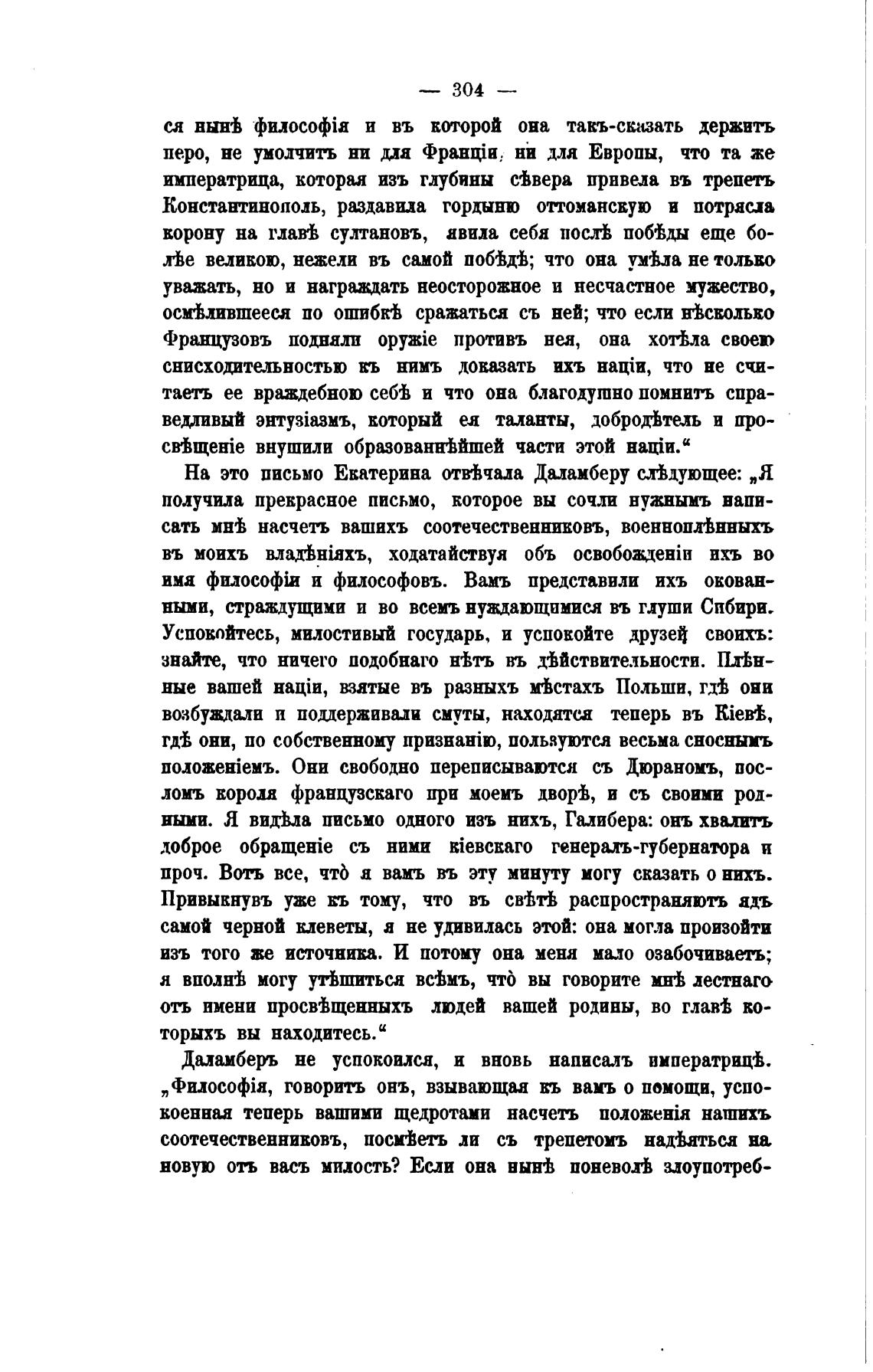 На это письмо Екатерина отжала Даламберу сл%дующее: „Я