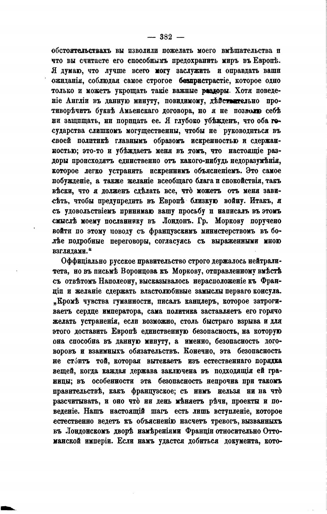 таа, но въ письм± Воронцова въ Моркову, отправленному в“сть