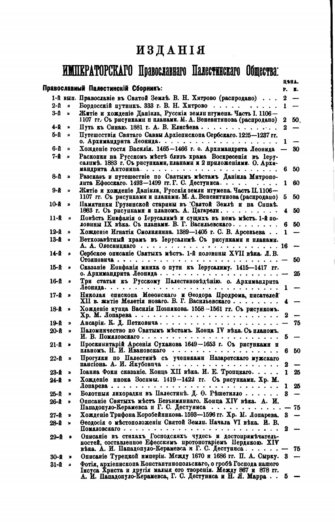 1-й выи. npamcxnie въ Святой Зек“. В. Н. Хитрово (распродано)